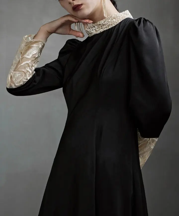 クラシカルとモードを兼ね備えたバック刺繍が目を惹くオケージョンドレスは、細部にこだわり「後ろ姿が美しく見える服」を目指して仕上げられました。50年代のフィット&フレアを彷彿とさせるシルエットと、マットなサテン生地に刺繍を施した華やかなデザインが特徴で、結婚式やパーティーはもちろんデイリーにも使える一着です。