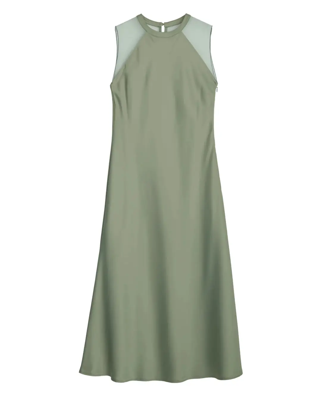 程よい光沢感が大人レディな雰囲気を引き立て、セミフレアシルエットはスタイルアップ効果を狙えます。