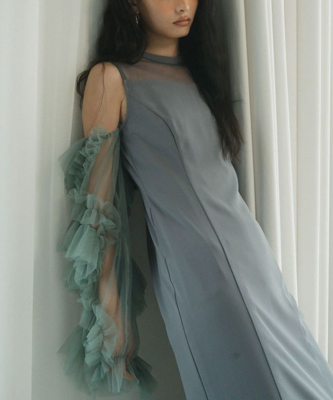 大胆なボリューム感が目を惹くチュールドレスは、柔らかな着心地と華やかさを両立した一枚です。シンプルなデザインのワンピースに対して、ボリュームスリーブのチュールが絶妙なバランスを演出。さらに、ドッキング仕様やアームカバーとしてのアレンジが可能で、デザイン性と実用性を兼ね備えています。