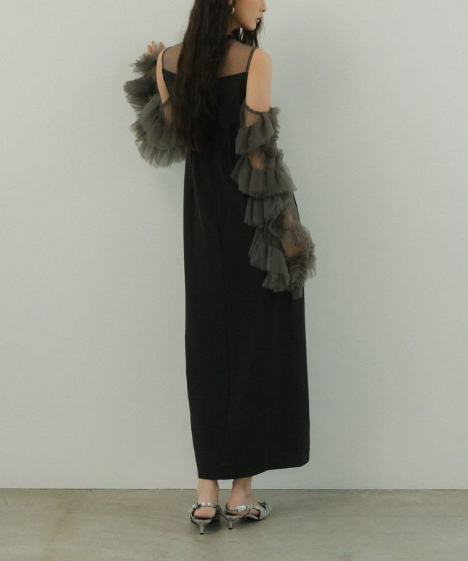 大胆なボリューム感が目を惹くチュールドレスは、柔らかな着心地と華やかさを両立した一枚です。シンプルなデザインのワンピースに対して、ボリュームスリーブのチュールが絶妙なバランスを演出。さらに、ドッキング仕様やアームカバーとしてのアレンジが可能で、デザイン性と実用性を兼ね備えています。