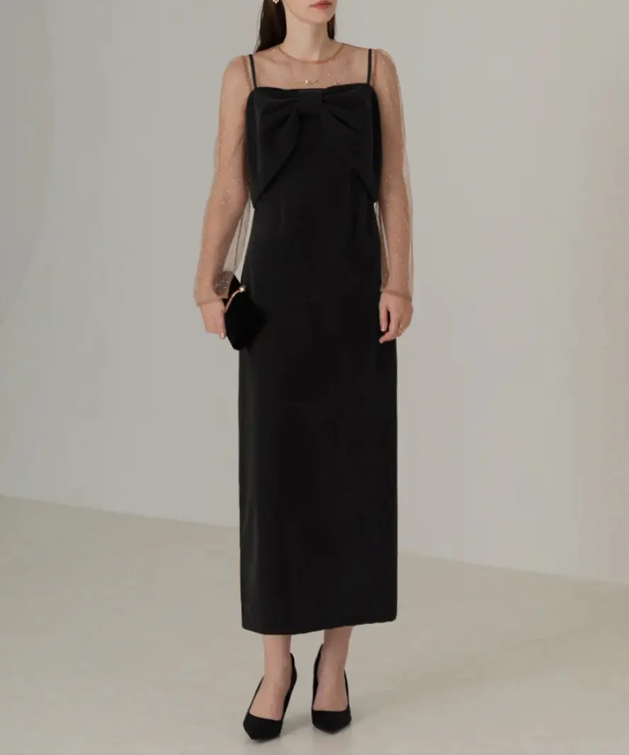 程よい肌見せとシースルーのドット柄が、エレガントで抜け感のある印象を与えます。