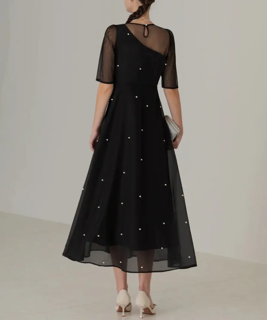 全体的に散りばめられた小粒のパールが高級感と繊細な輝きをプラスしシンプルなカラーを引き立てます。