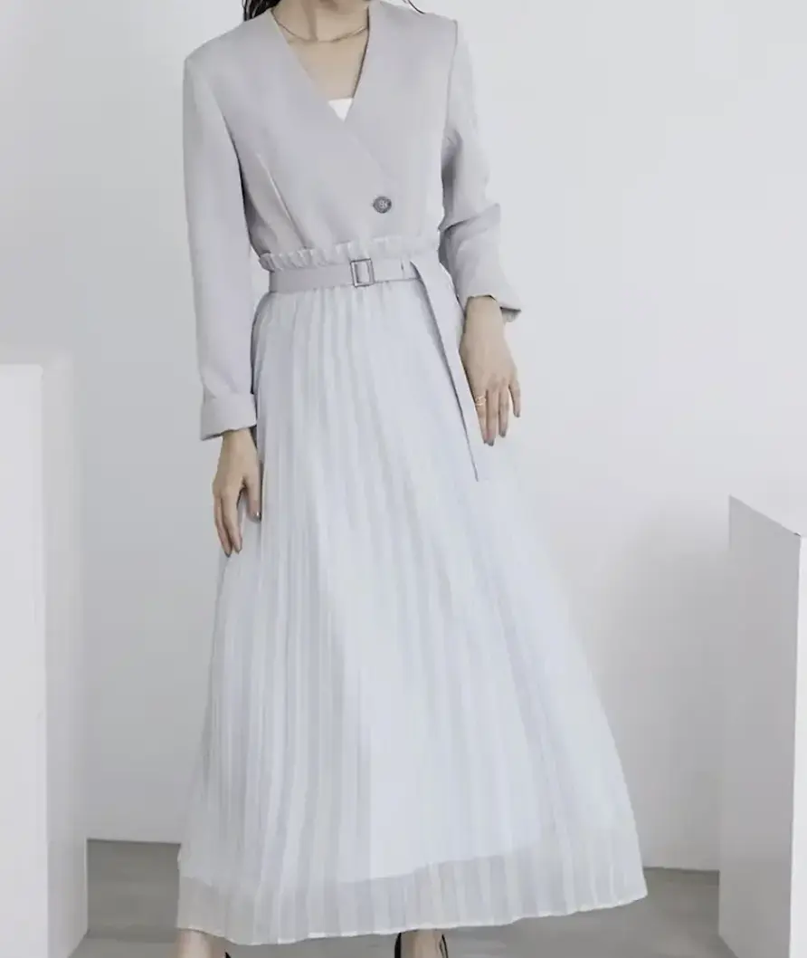 スカート:左脇ホック付ファスナー開 ウエスト後ゴム入 ポケット無 共布ベルト付