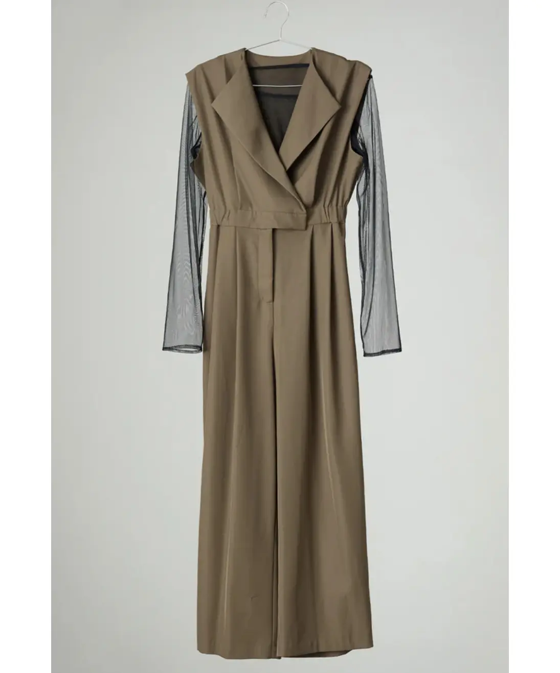 シアートップスとノースリーブオールインワンの2ピースセット。