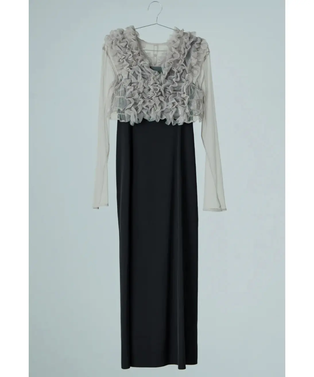 フリルを重ねたチュールベストが目を惹くデザインです。