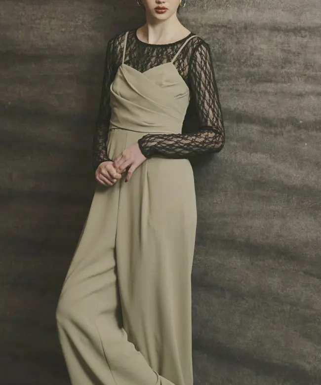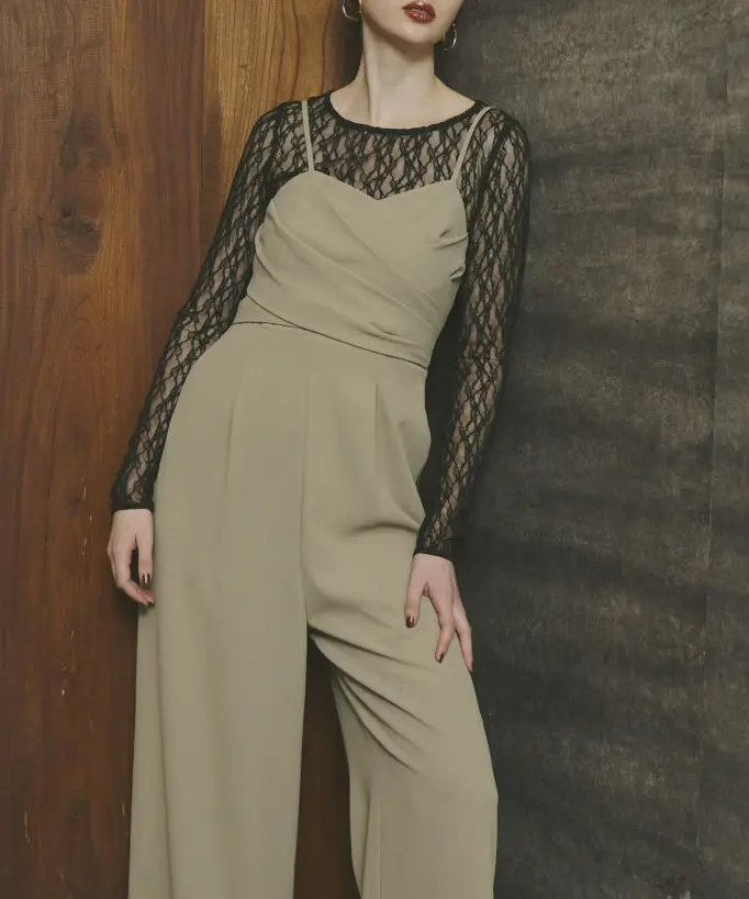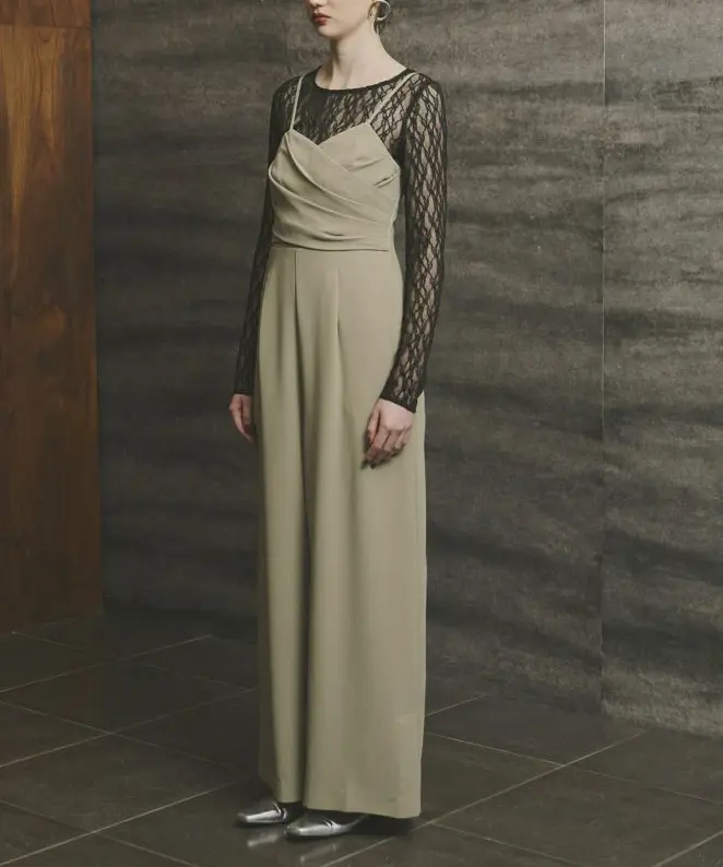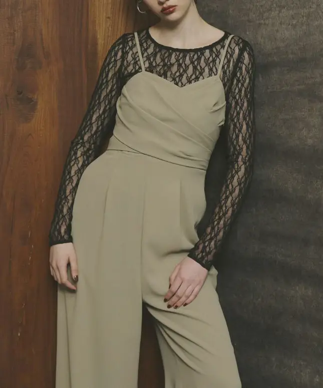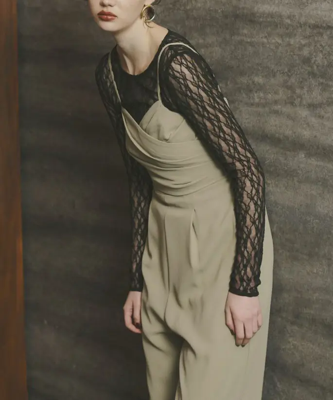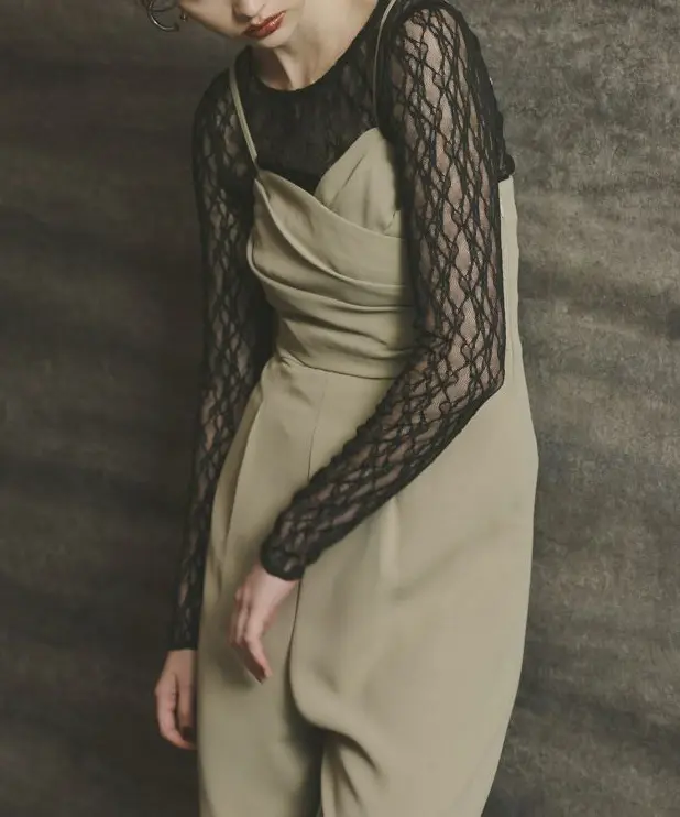 オールインワンのランダムタックが華やかさを加え、単体でも着用可能なデザインでコーディネートの幅が広がります。