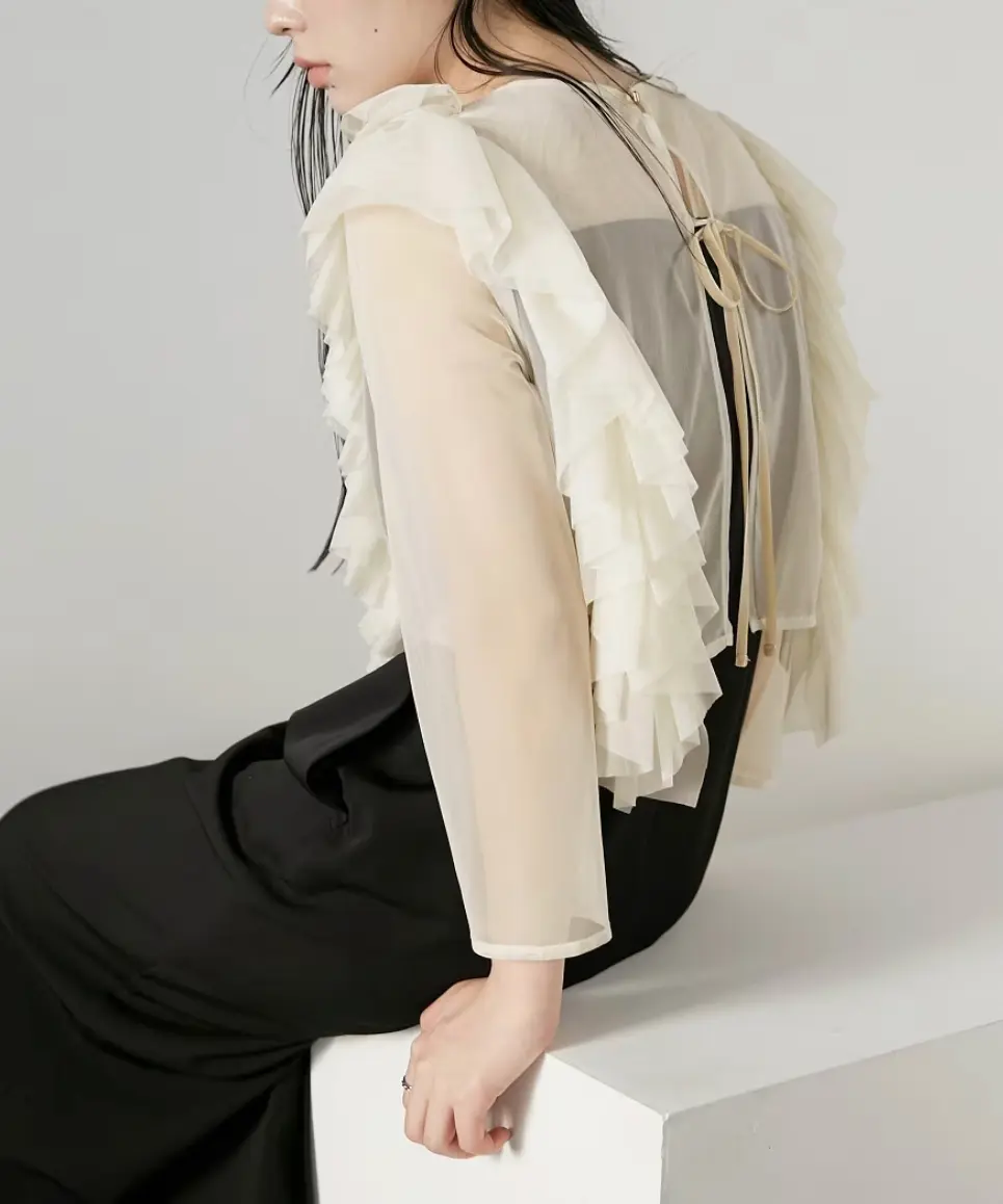 肌触りのいいチュールフリルデザインの、エレガントさを際立たせるワンピースドレス。