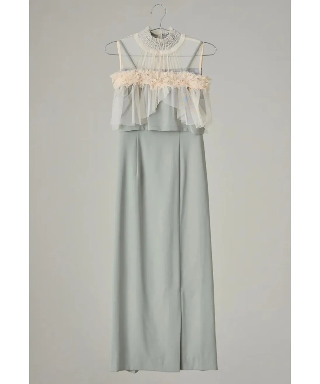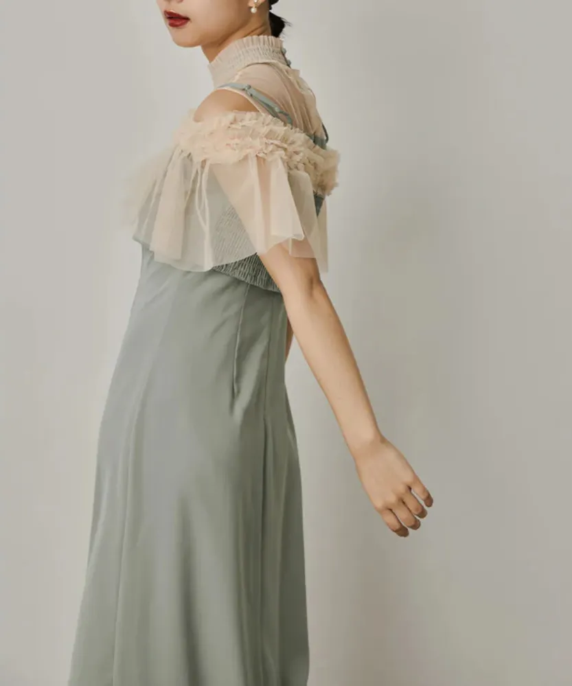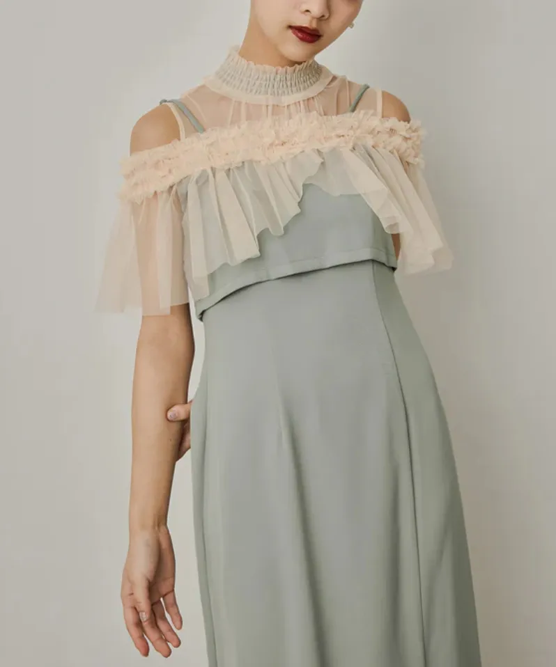 それぞれ単品でも使えるシャーリングフリルビスチェとワンピースの2ピースセット。