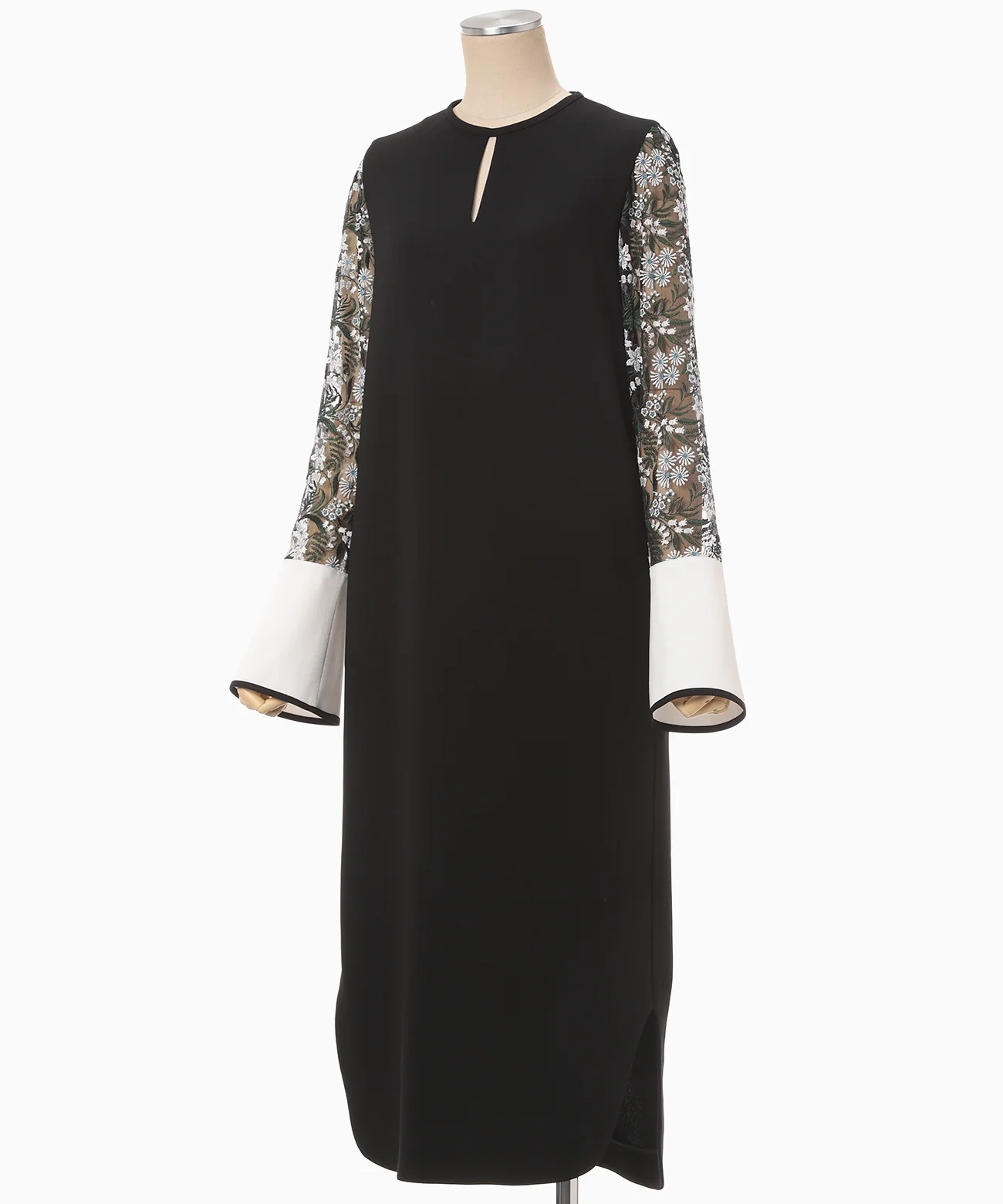 花柄レースのスリーブが印象的なチュールレースドレス。今季向けに花柄デザインをアップデートした新シグネチャードレスは、ゆったりとした身頃と長めのスカート丈により上品さを格段にアップ。オケージョン使用はもちろん、裾にカーブ状のスリットを施すことで足さばきが良く、様々なボトムスとの組み合わせも可能なため、デイリー使いにも対応できる汎用性の高さが魅力。異なるシーンで活躍する万能な一着として、ワードローブに加えたいアイテムです。