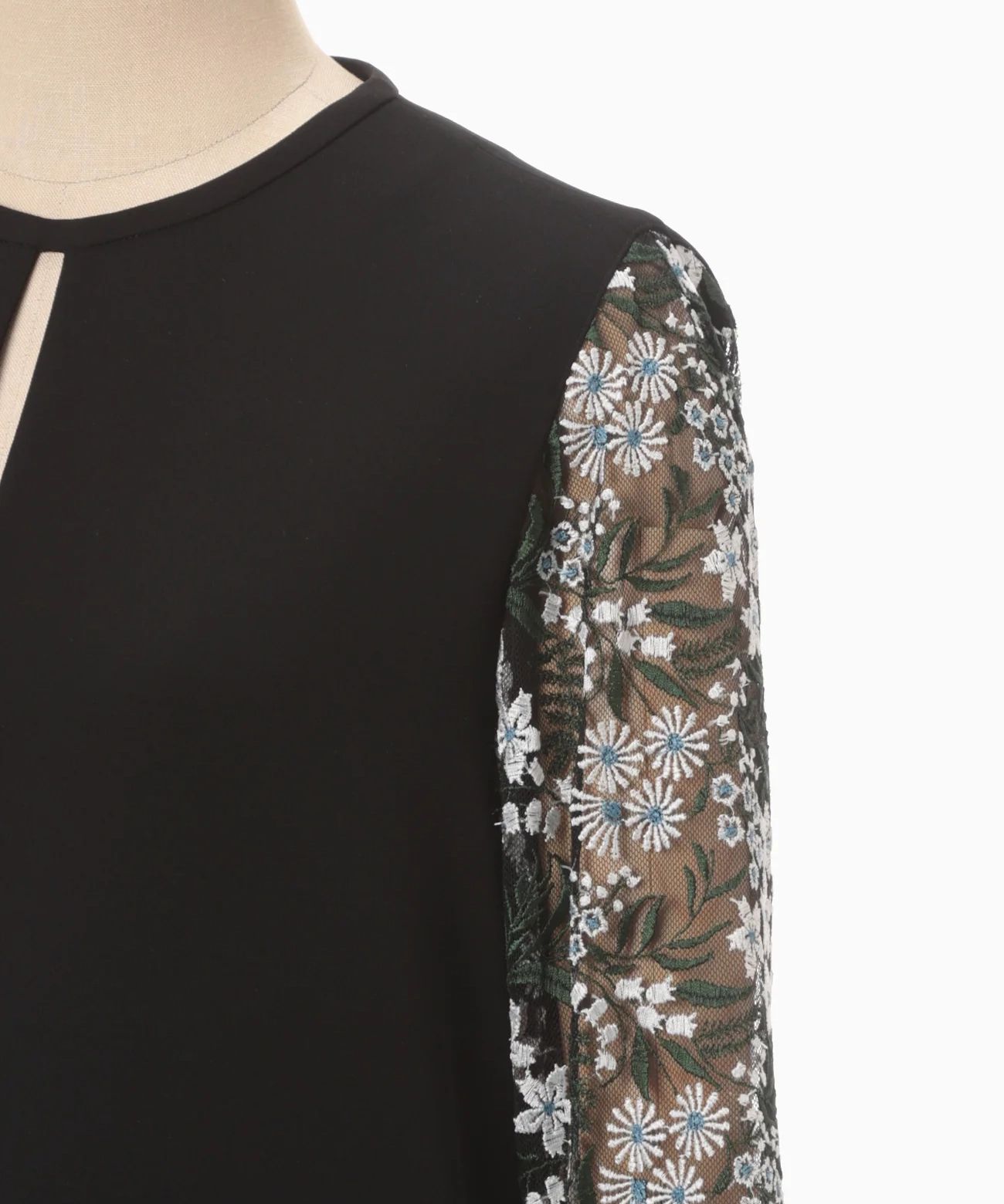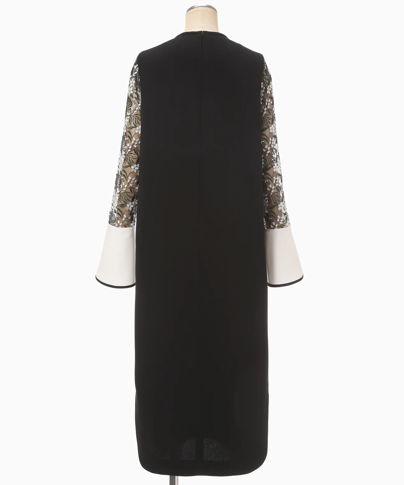 【1サイズ】Floral Lace-Sleeve Classic Dress - black