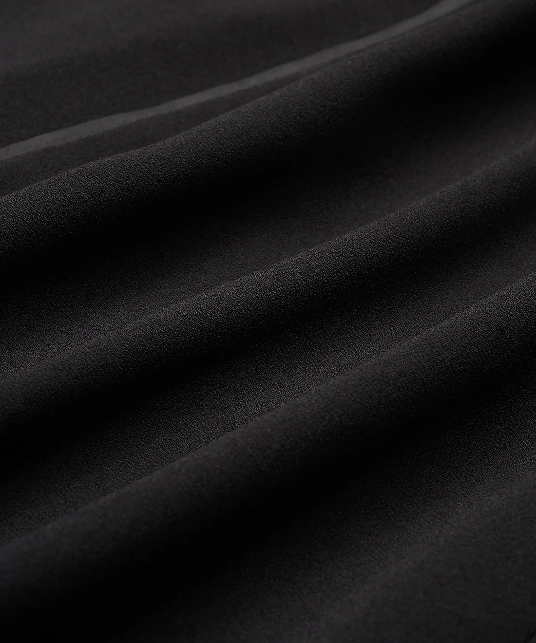 落ち感のある生地を生かしたAラインシルエットが優雅に揺れ、土台生地に配した発色の良いアセテート混素材が深みのある色彩と奥行きを演出。特別なシーンをドラマチックに彩る一着です。
