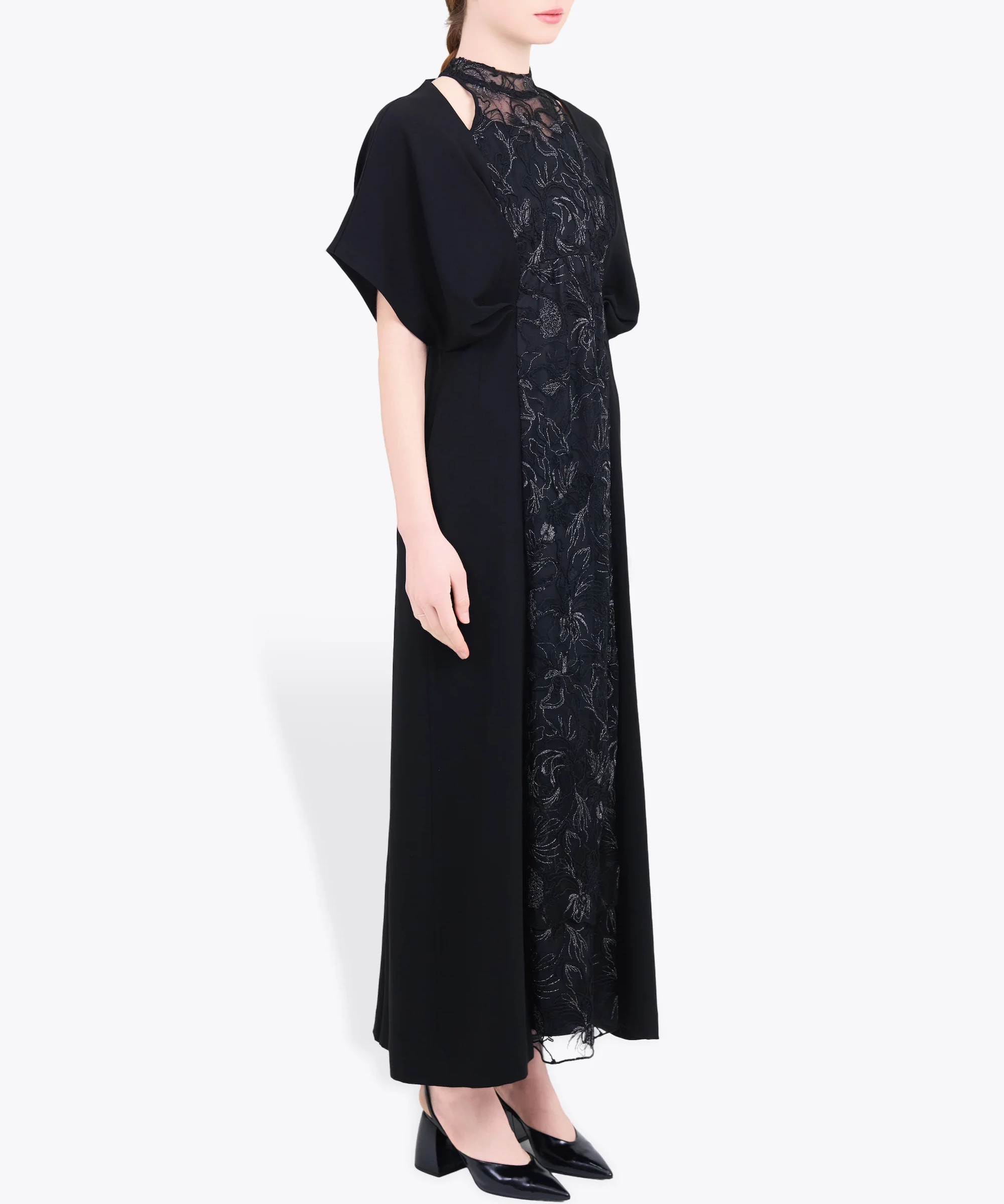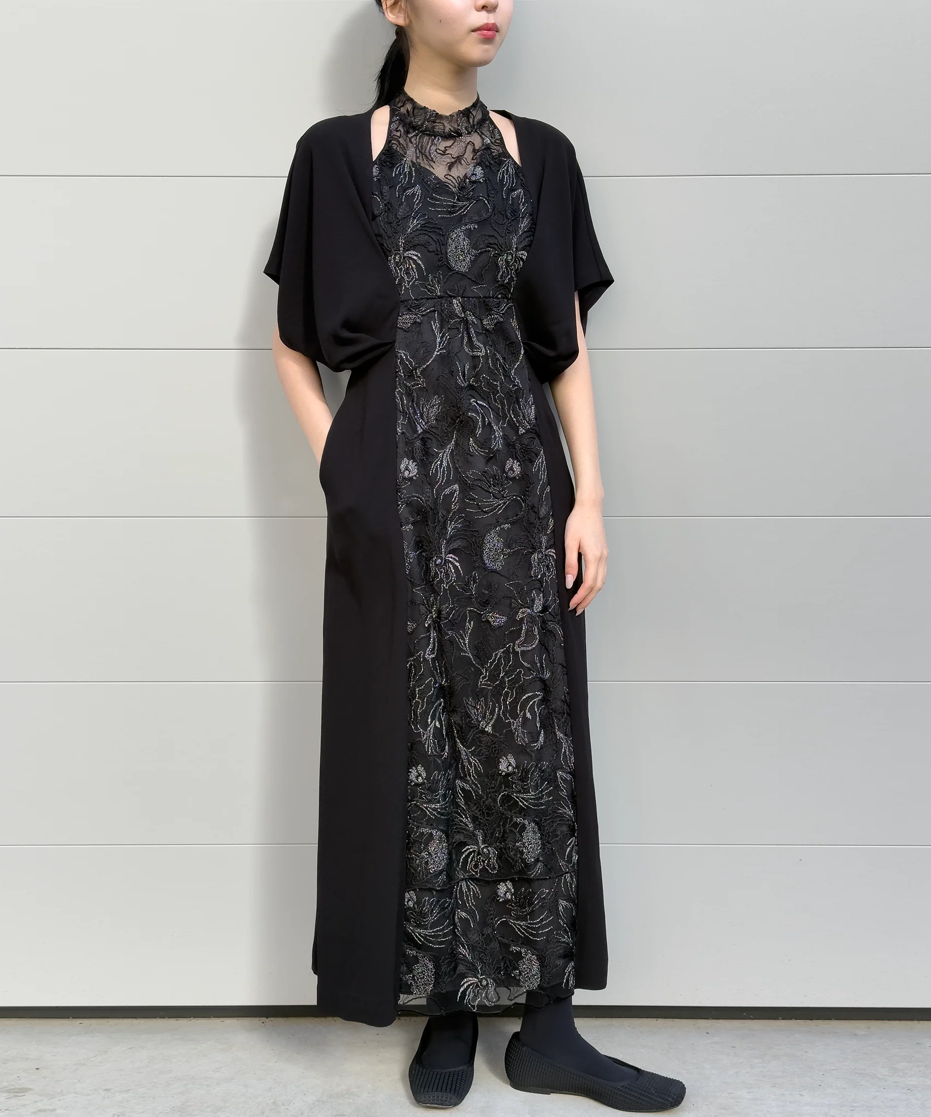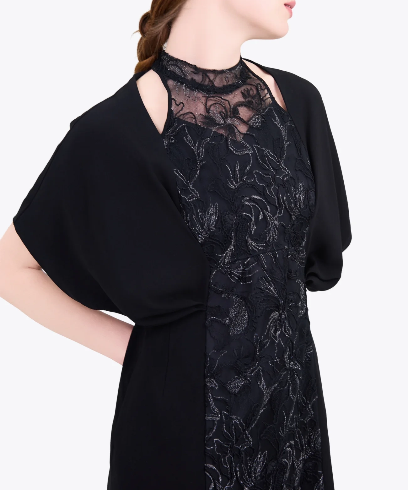 “Seem”コードエンブロイダリーレース ケープショルダードレス