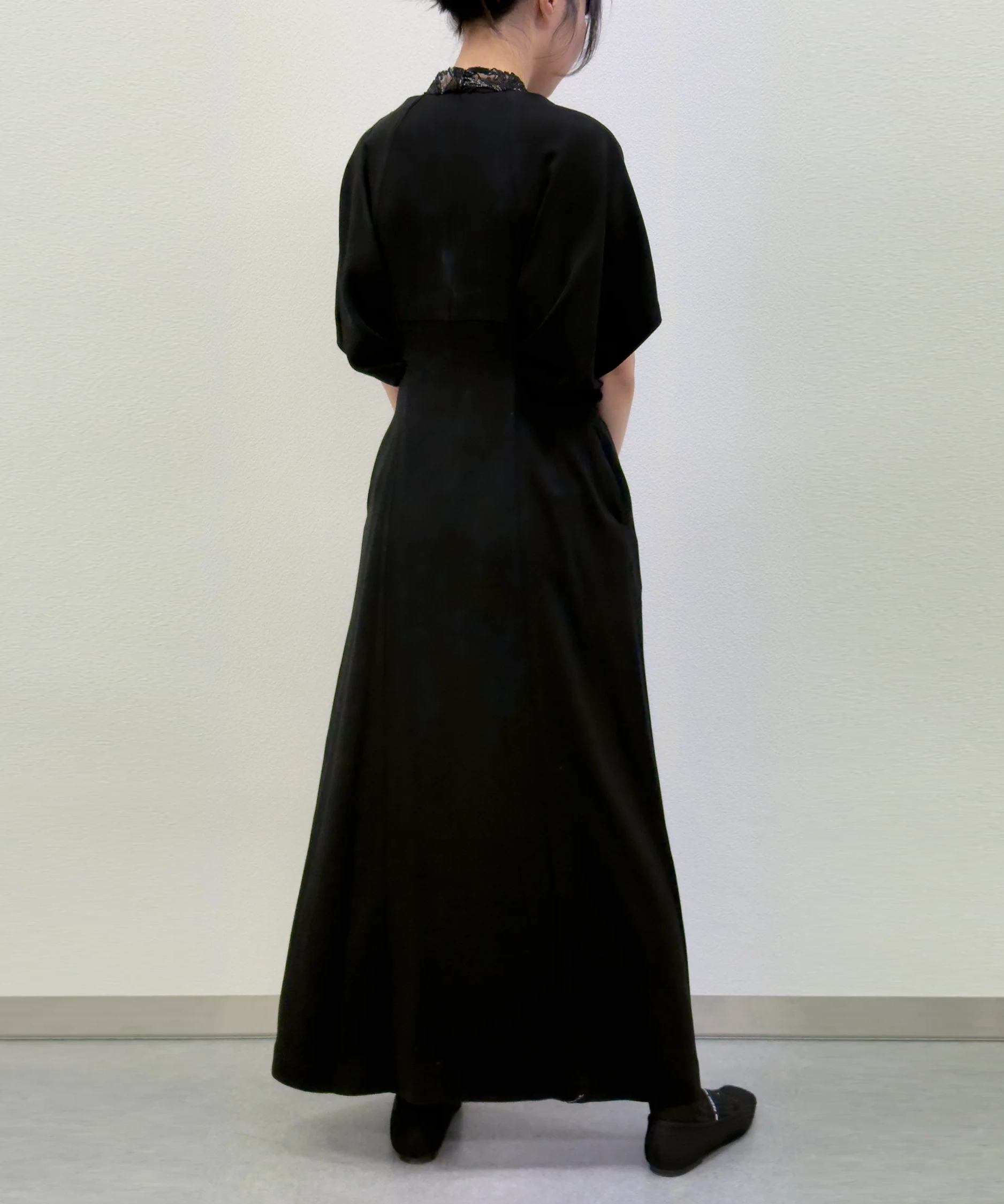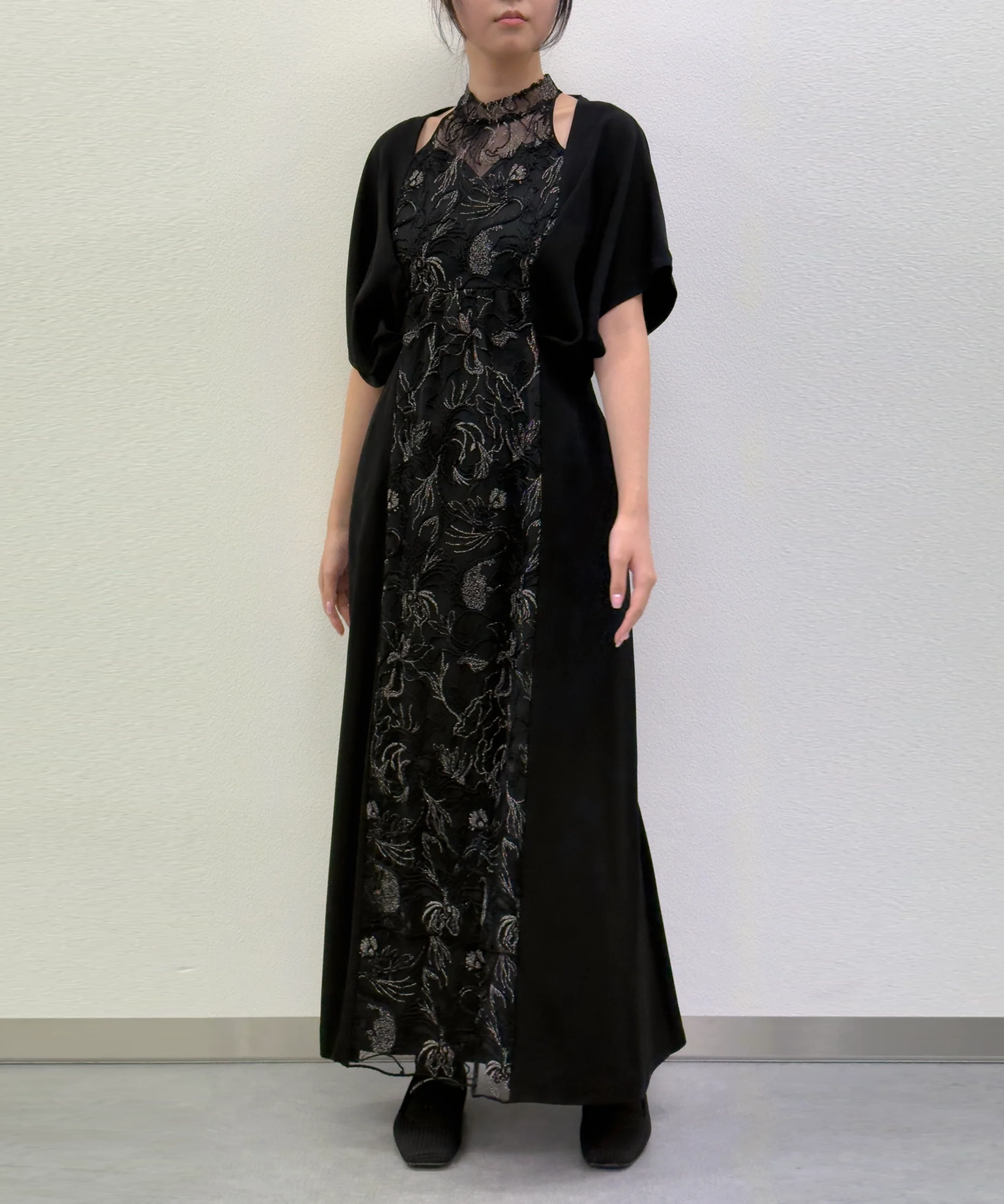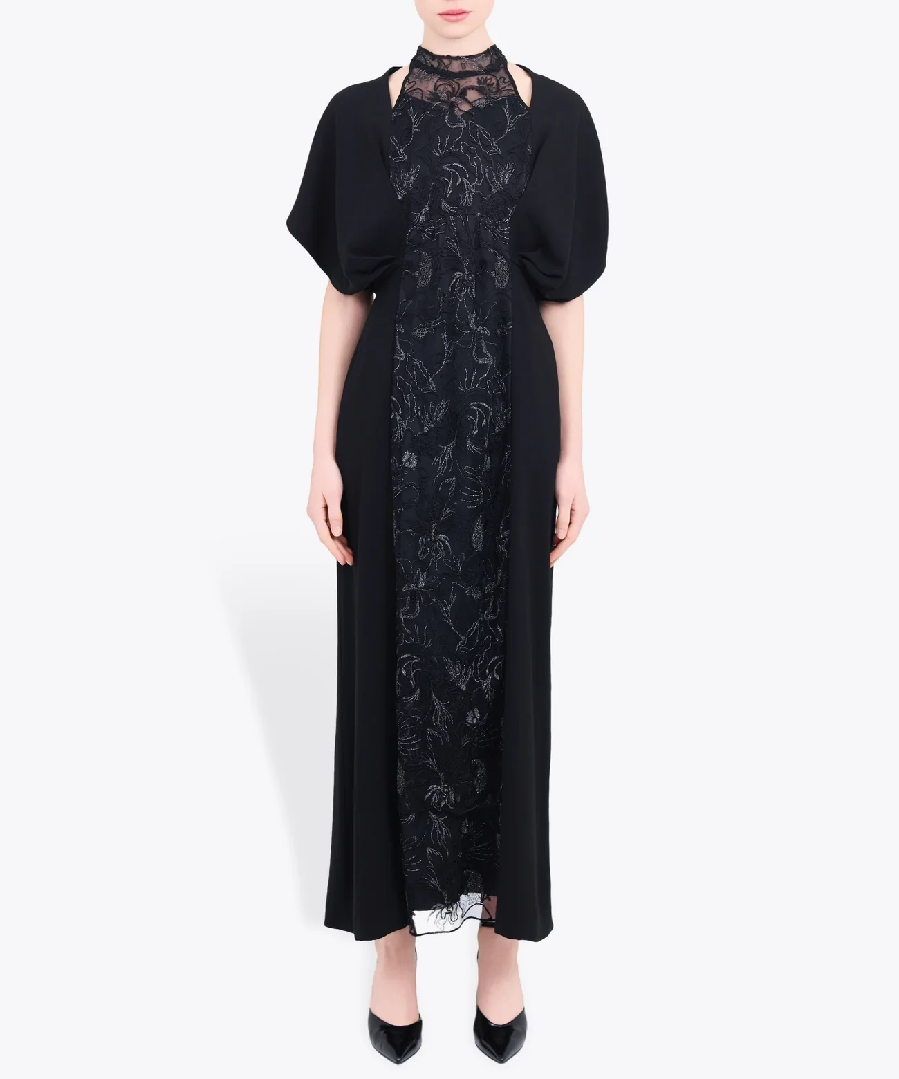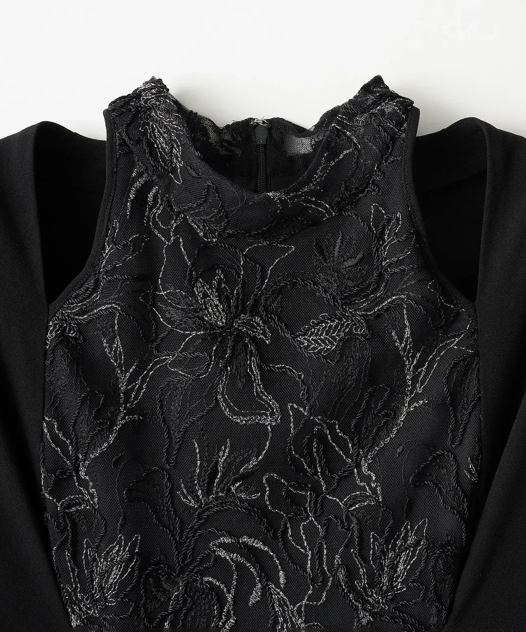 “Seem”コードエンブロイダリーレース ケープショルダードレス