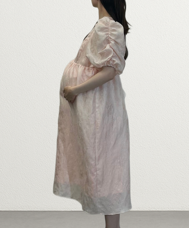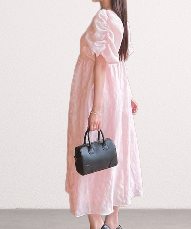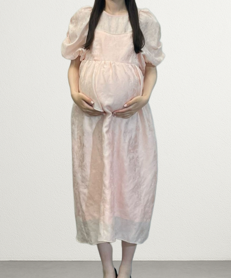 【体型カバー×華やか見え】光沢ジャカードの大人ガーリードレス|マタニティにも◎