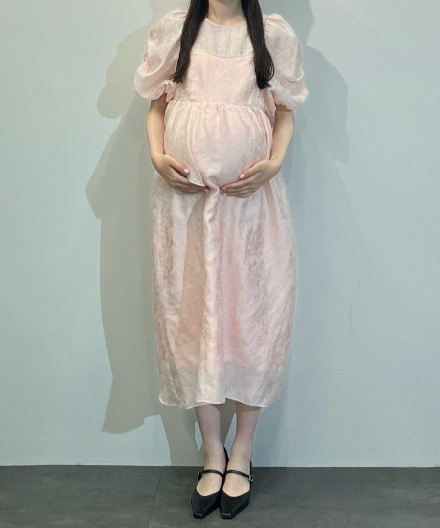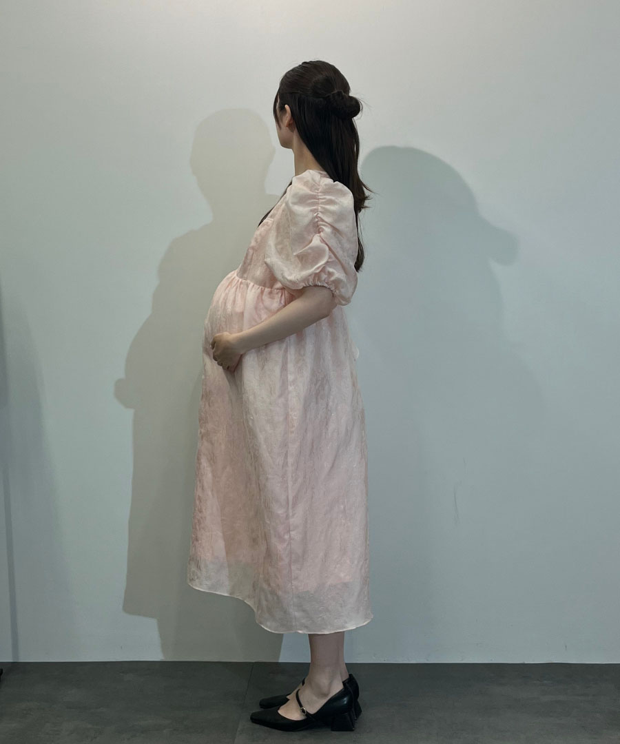 【体型カバー×華やか見え】光沢ジャカードの大人ガーリードレス|マタニティにも◎