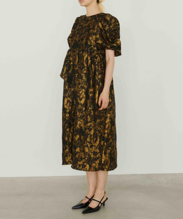 【体型カバー×華やか見え】光沢ジャカードの大人ガーリードレス|マタニティにも◎