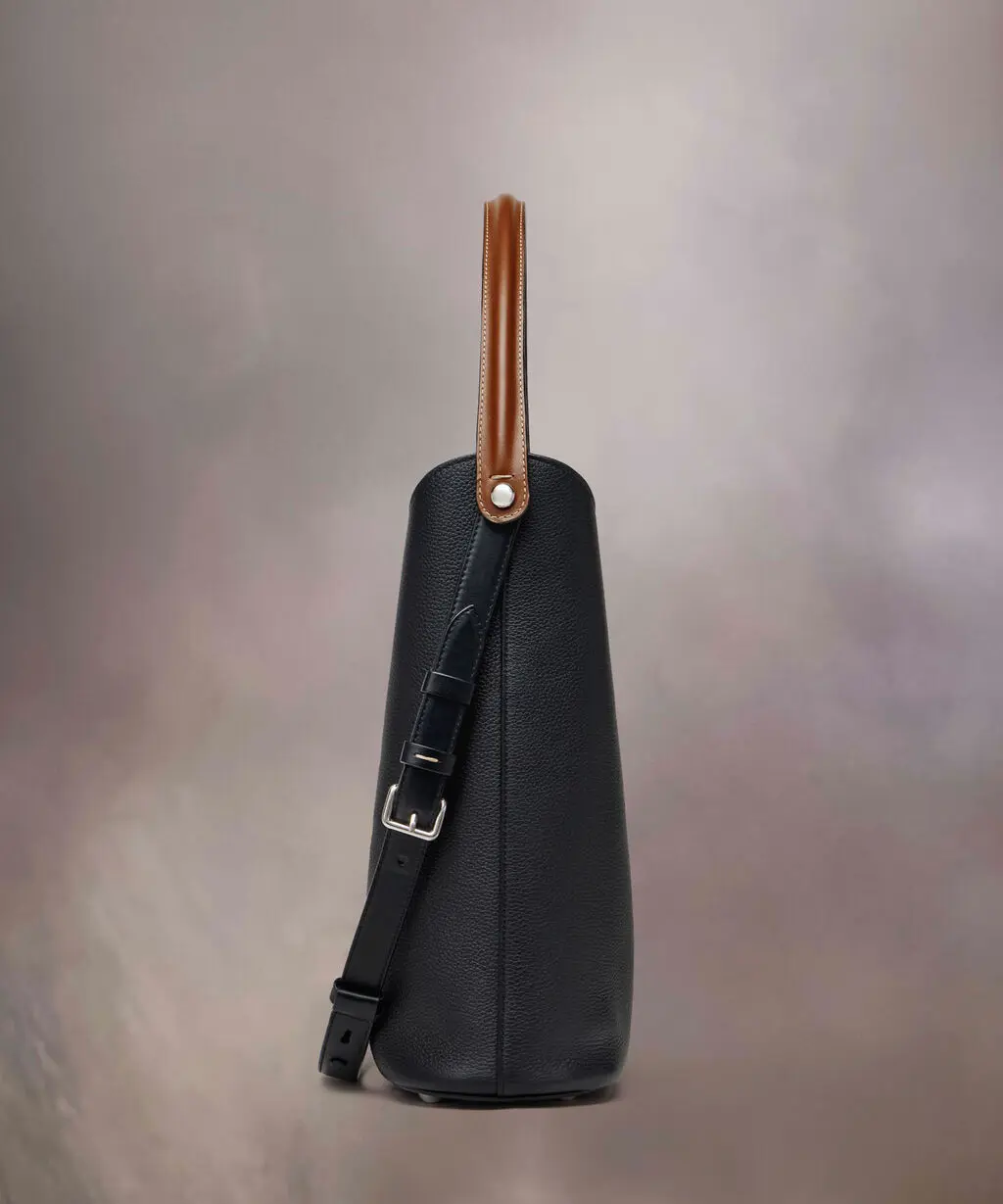 柔らかなペブルドカーフスキンを使用し、クラシカルなレザーワークと洗練されたラインが融合したスモールサイズのモデルです。
