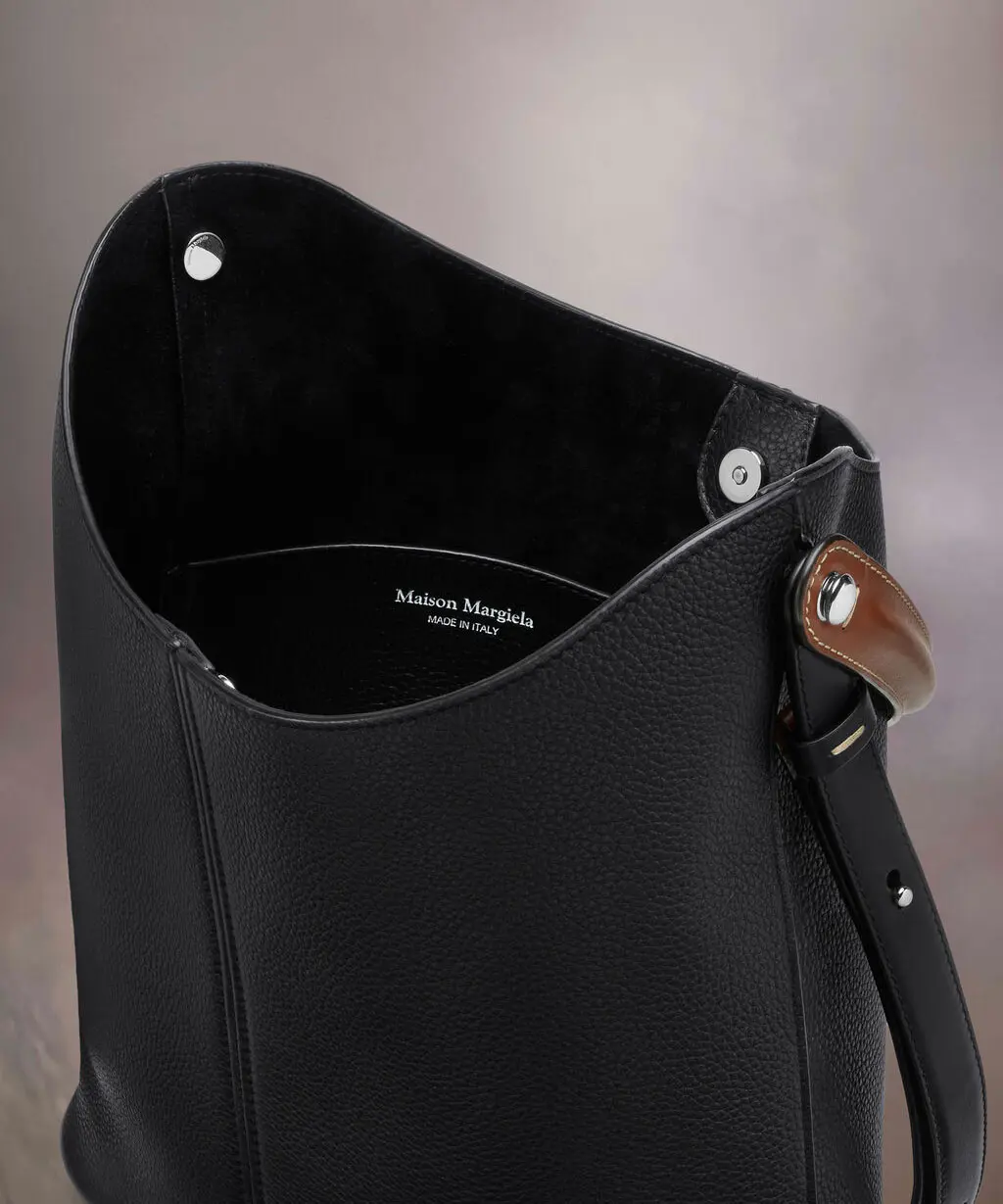 底面にはスタッズを配し、自立性も確保。内側にはロゴが配され、背面にはメゾン マルジェラの象徴である4本の白いステッチと、反対面にはラベルが施されています。