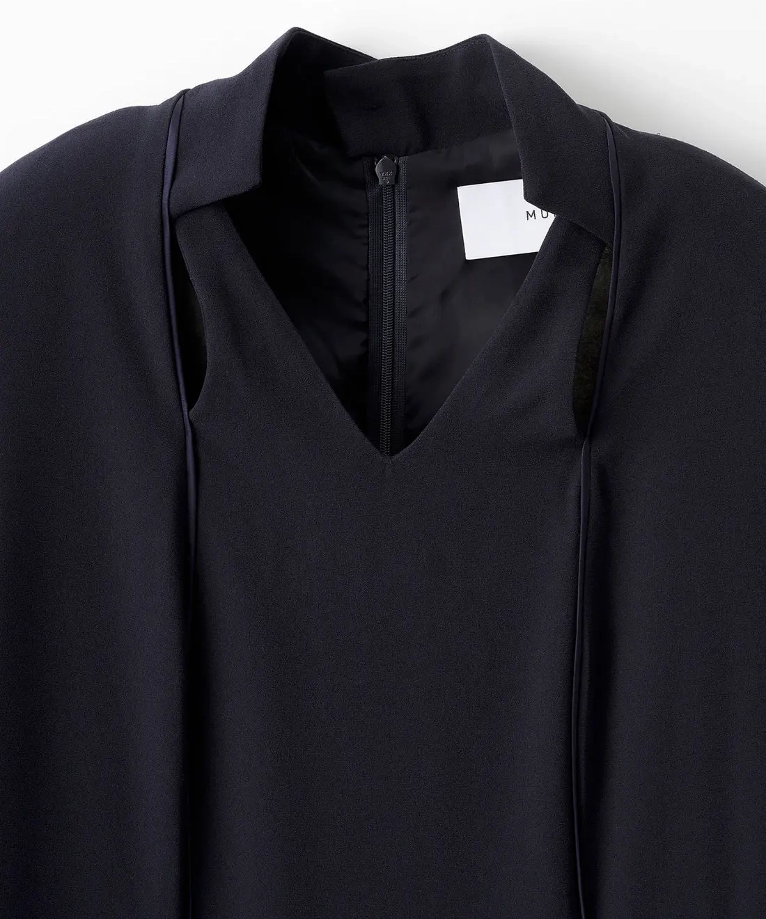 今作は落ち着きのあるストレートシルエットで、シーンを選ばず着られる穏やかな佇まいに仕上げました。デコルテ部分は花びらを思わせる変形カッティングで、ネックレスや大ぶりイヤリングとも好相性。