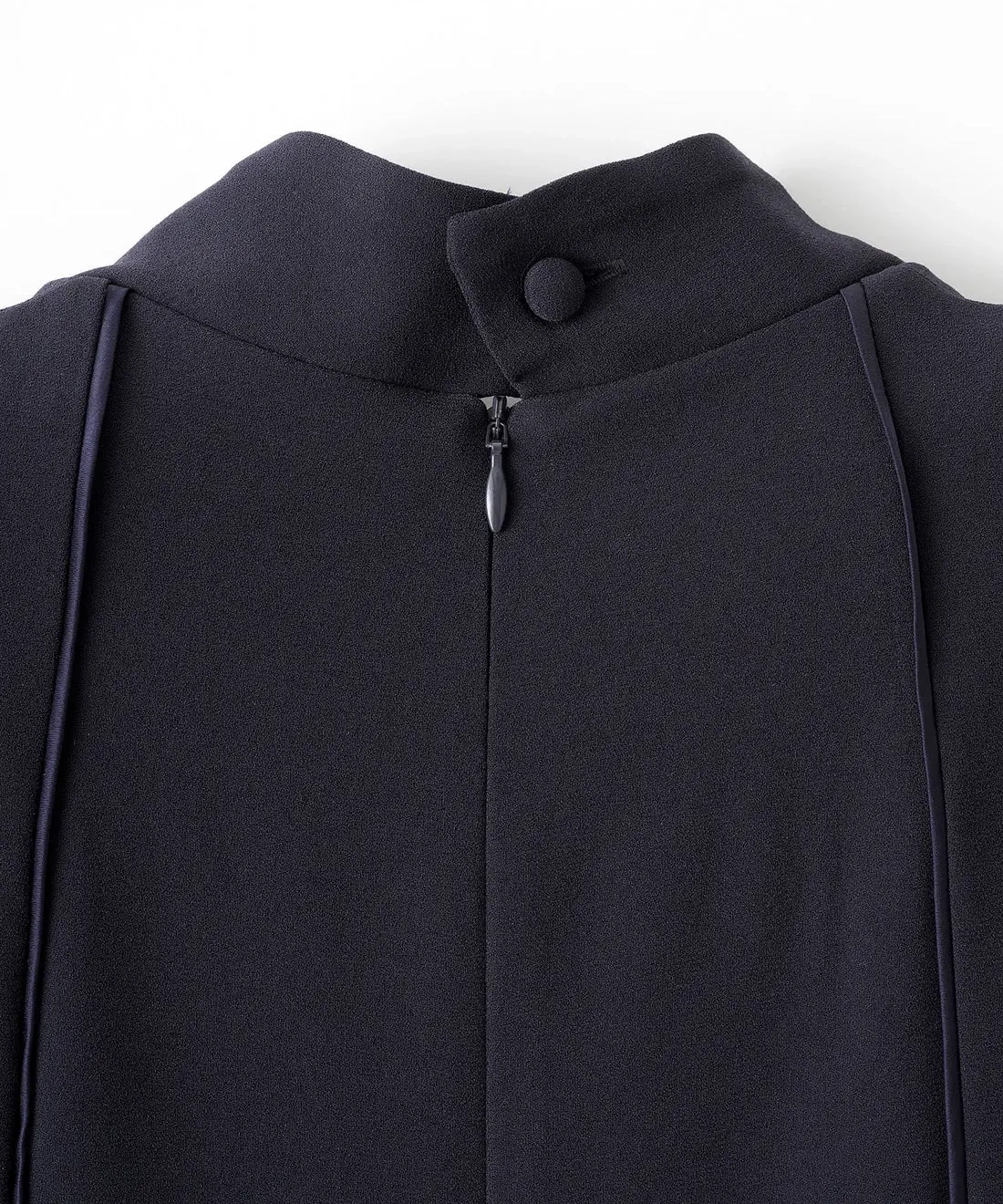 ストレートラインで体のラインを拾いすぎず、上品に縦長効果をプラス! 花びらカットのネックがアクセサリーを引き立ててくれるので、華奢チェーンでもStatementジュエリーでも映えます。