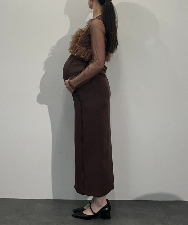 ウエストゴムで楽ちん◎パールフリル×ストレートワンピースセットアップ