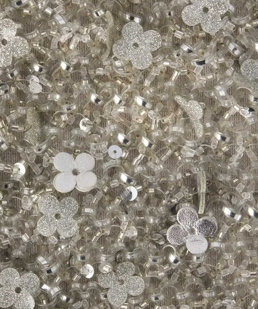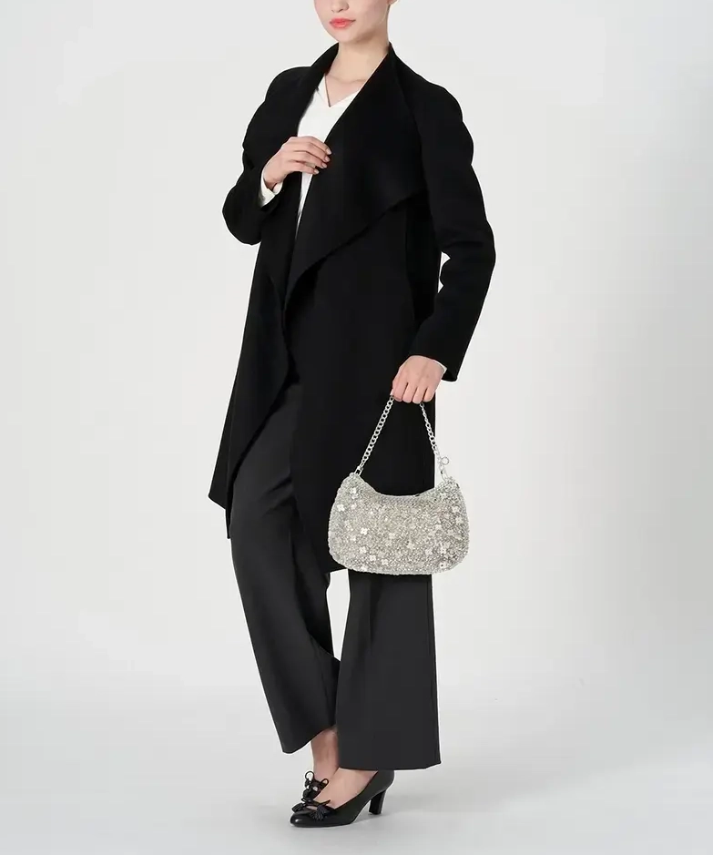 花(フィオーリ)モチーフのビーズを贅沢に散りばめた〈FIORITURA フィオリトゥーラ〉チェーンバッグ。丸みのあるフォルムが愛らしく、チェーンを外せばクラッチとしても使える2WAY仕様です。ワイヤーコードの基本構造で表現されたシルバーは、ジュエリーのようにきらめき、持つだけでラグジュアリーな気分に。ファスナー開閉・裏地付きで二つ折り財布やコスメポーチ、スマートフォンなど必需品をしっかり収納できます。