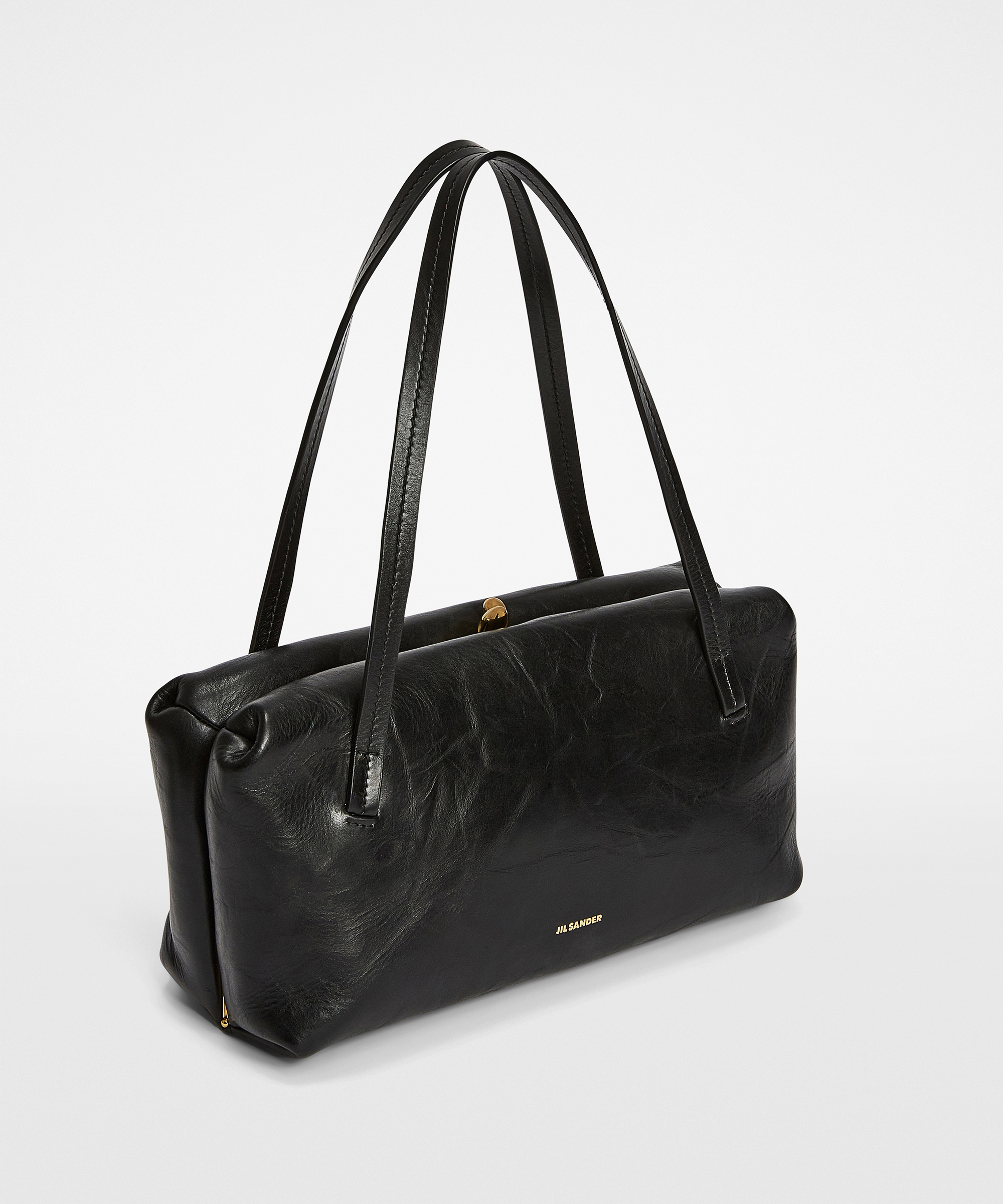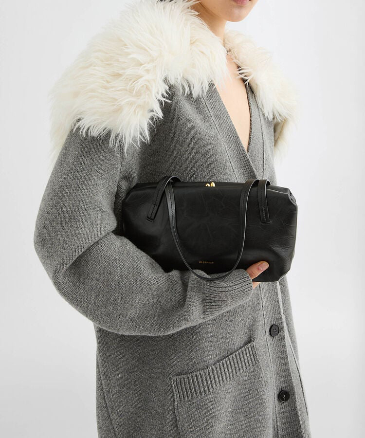 洗練されたメタルフレームを備えた〈Jil Sander Goji Pillow Small〉ショルダーバッグ。ふっくらとしたレクタンギュラーシェイプをカーフレザーで包み込み、トップハンドルでハンドキャリーや肘掛け持ちが楽しめます。両サイドはマチを拡張できるインサート仕様で、見た目以上の収納力を実現。ナッパレザーライニングの内装にはカードスロットを装備し、ミニ財布レスでのお出かけもスマート。フロントにはフォイルエンボスのJil Sanderロゴが控えめに輝き、クラッチスタイルでも活躍します。
