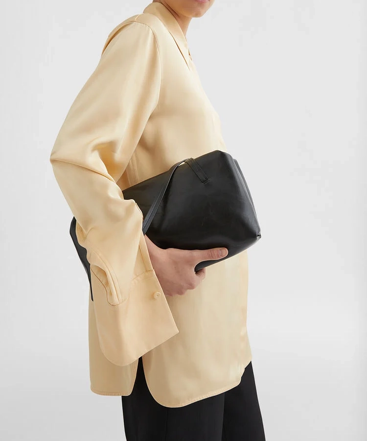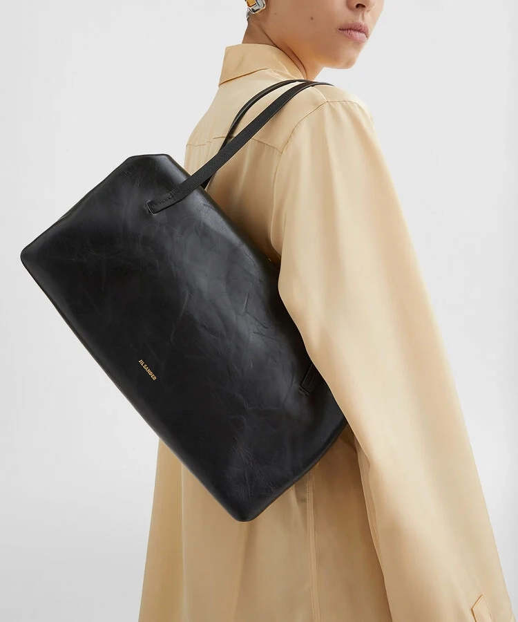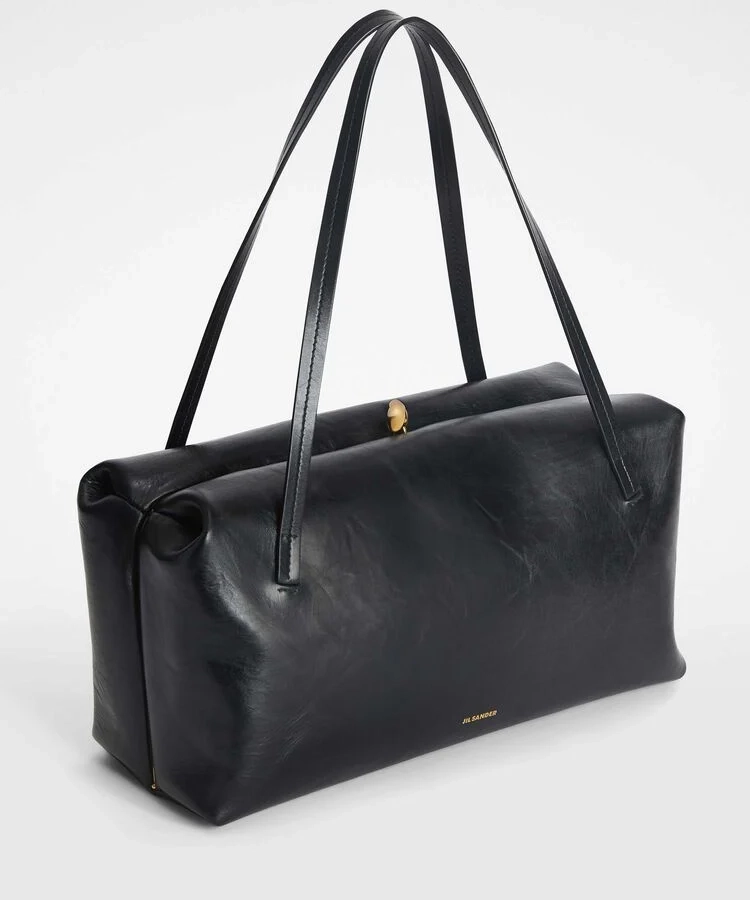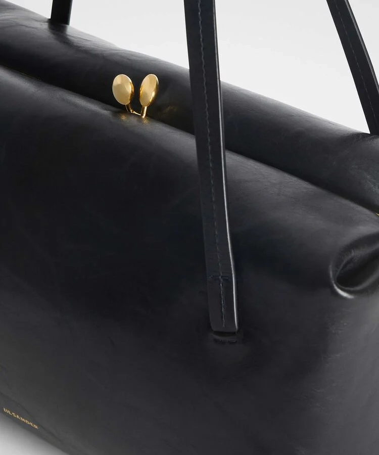 メタルフレームが象るクラシカルな口金と、ふっくらとした“ピロー”フォルムが特徴の〈Jil Sander Goji Pillow Medium〉ショルダーバッグ。上質なカーフレザーを贅沢に使用し、トップハンドルでハンドキャリーや肘掛け持ちが楽しめます。両サイドには拡張できるインサートを備え、見た目以上の収納力を発揮。ナッパレザーライニングの内装にはカードスロットを装備し、ミニ財布レスでのお出かけもスマートです。フロントにはフォイルエンボスのJil Sanderロゴが控えめに輝き、クラッチスタイルとしても活躍します。