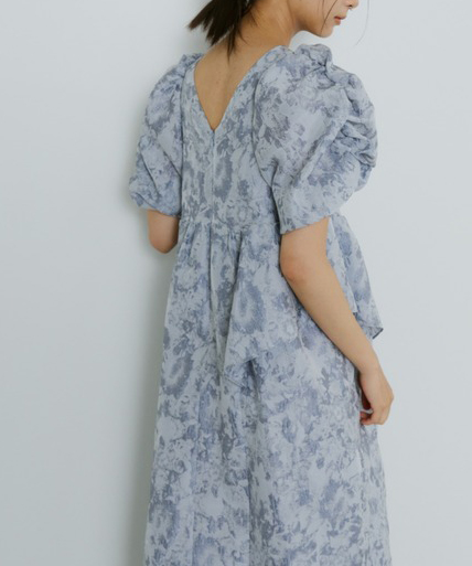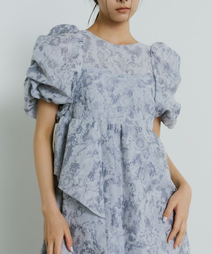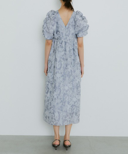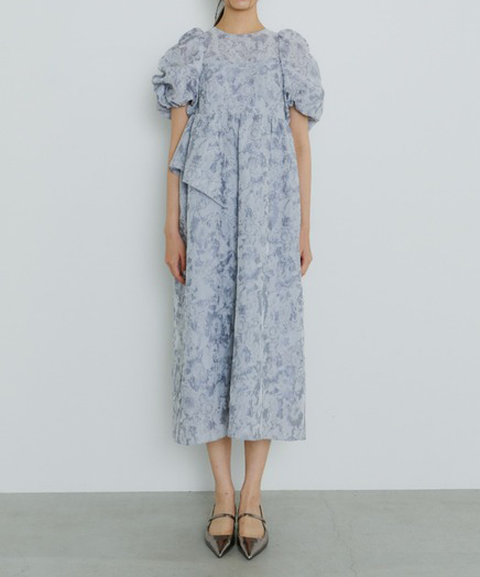 上品な光沢を放つジャカード生地を贅沢に使用した、華やかでガーリーなボリュームドレス。