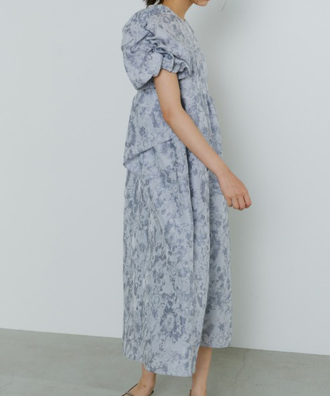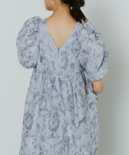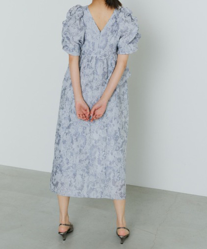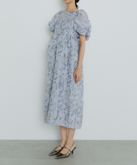 上品な光沢を放つジャカード生地を贅沢に使用した、華やかでガーリーなボリュームドレス。