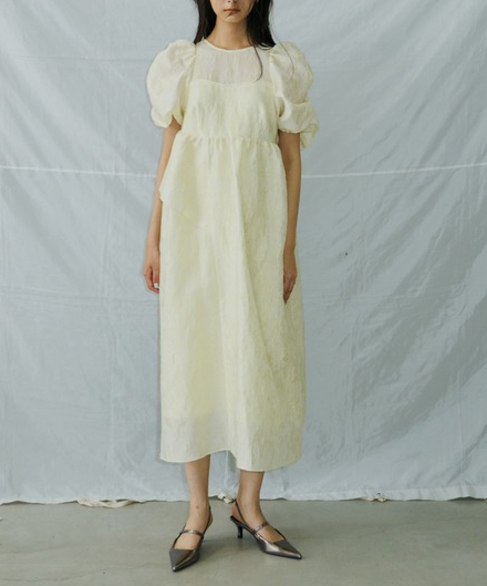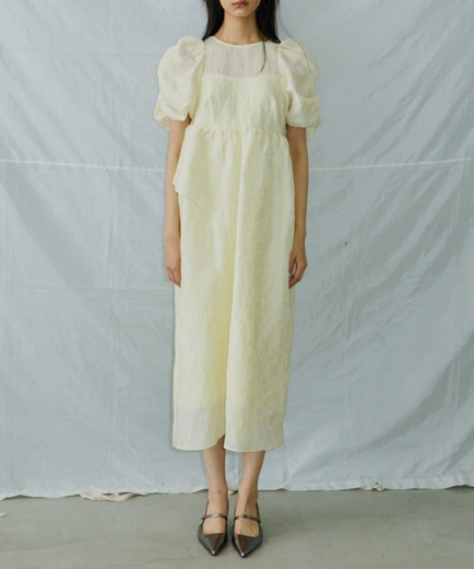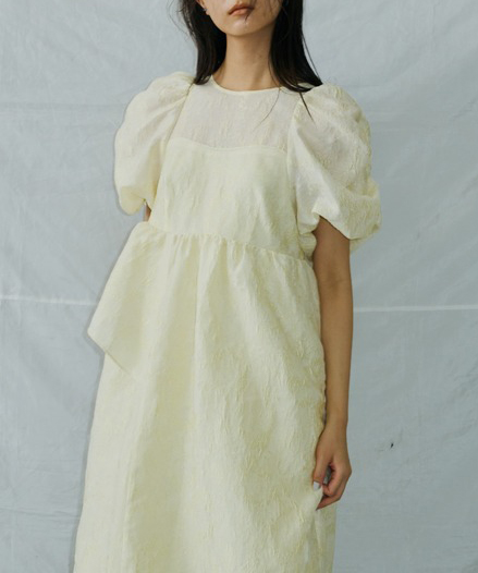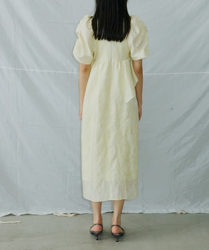 上品な光沢を放つジャカード生地を贅沢に使用した、華やかでガーリーなボリュームドレス。