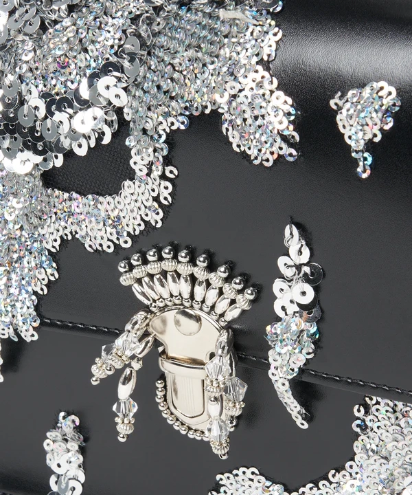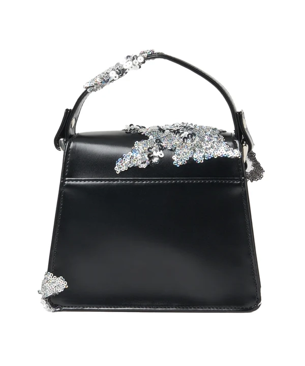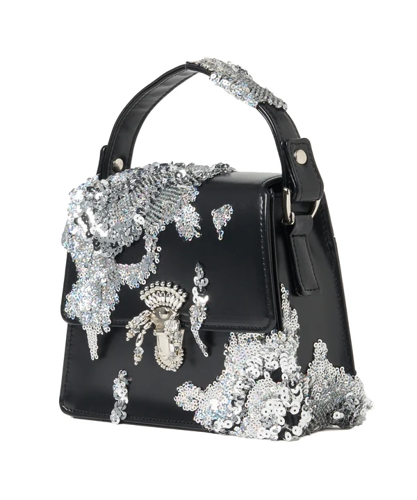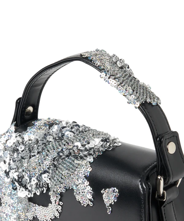キラキラしたスパンコールがランダムに散りばめられていて、とってもキレイなミニバッグです。黒いフェイクレザーとスパンコールの組み合わせはかっこよくて、ファッションを引き立ててくれる存在感があります。小物をまとめて入れてもOKで、特別なお出かけやデートにもぴったりです。