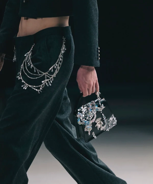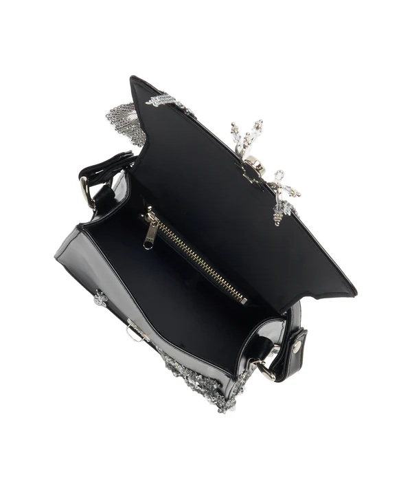 Tanaka Daisuke(タナカダイスケ)の「Magical Powder Mini Bag」は、ランダムに配されたスパンコールがまるで魔法の粉のように煌めくハンドバッグ。黒いフェイクレザーにキラキラとした輝きが映え、どこかファンタジックな雰囲気をまといます。小さくてコンパクトなのに、内ポケット付きで使い勝手も◎。予約アイテムで、2025年12月下旬にお届け予定です。細かい仕様や配置が多少変更になる場合もあります。