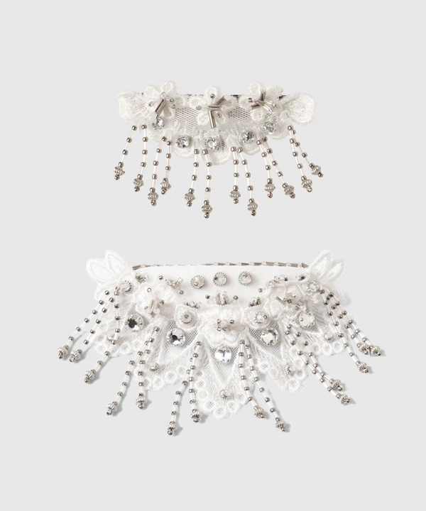 Tanaka Daisuke(タナカダイスケ)の「Snow Bijou Mini Barrette White」は、雪を思わせるビーズの刺繍とレースを組み合わせた美しいヘアアクセサリー。通常のビジュータイプより軽量で扱いやすく、左右両用仕様となっています。