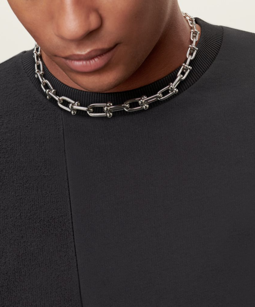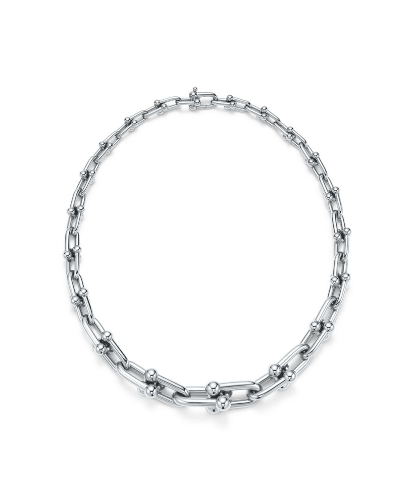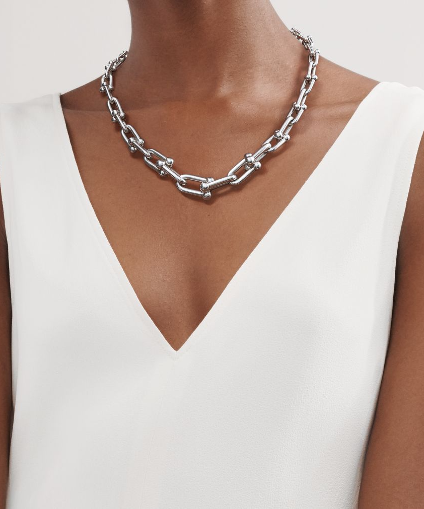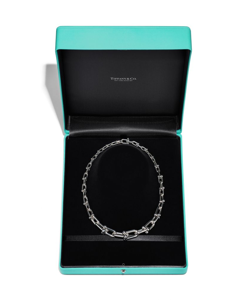 大胆でモードな存在感を放つティファニーの人気コレクション「ハードウェア」。このネックレスはシンプルながらも確かな重厚感があり、ひとつ纏うだけで都会的なスタイルを完成させます。日常使いから特別なシーンまで幅広く活躍するアイテムです。