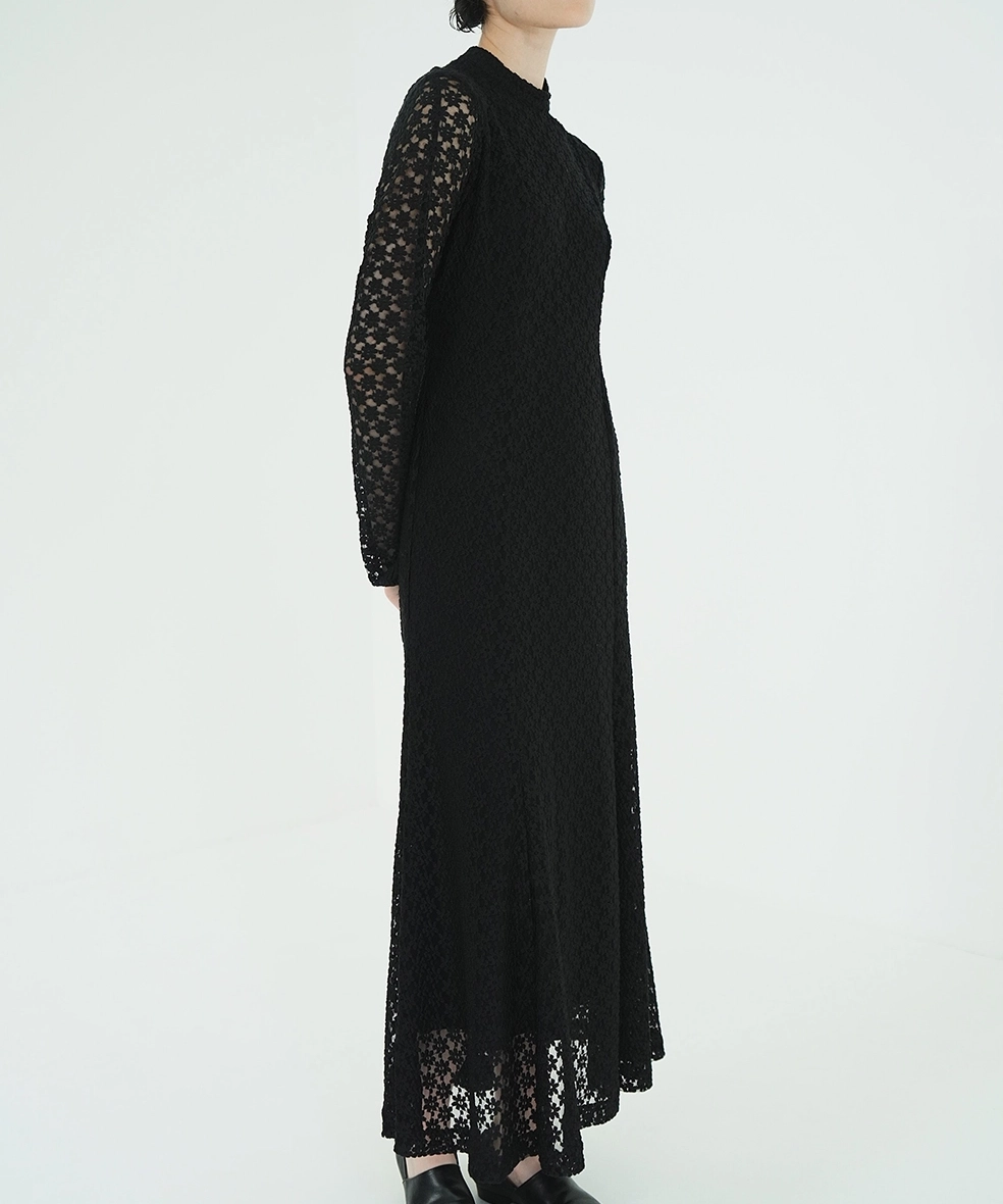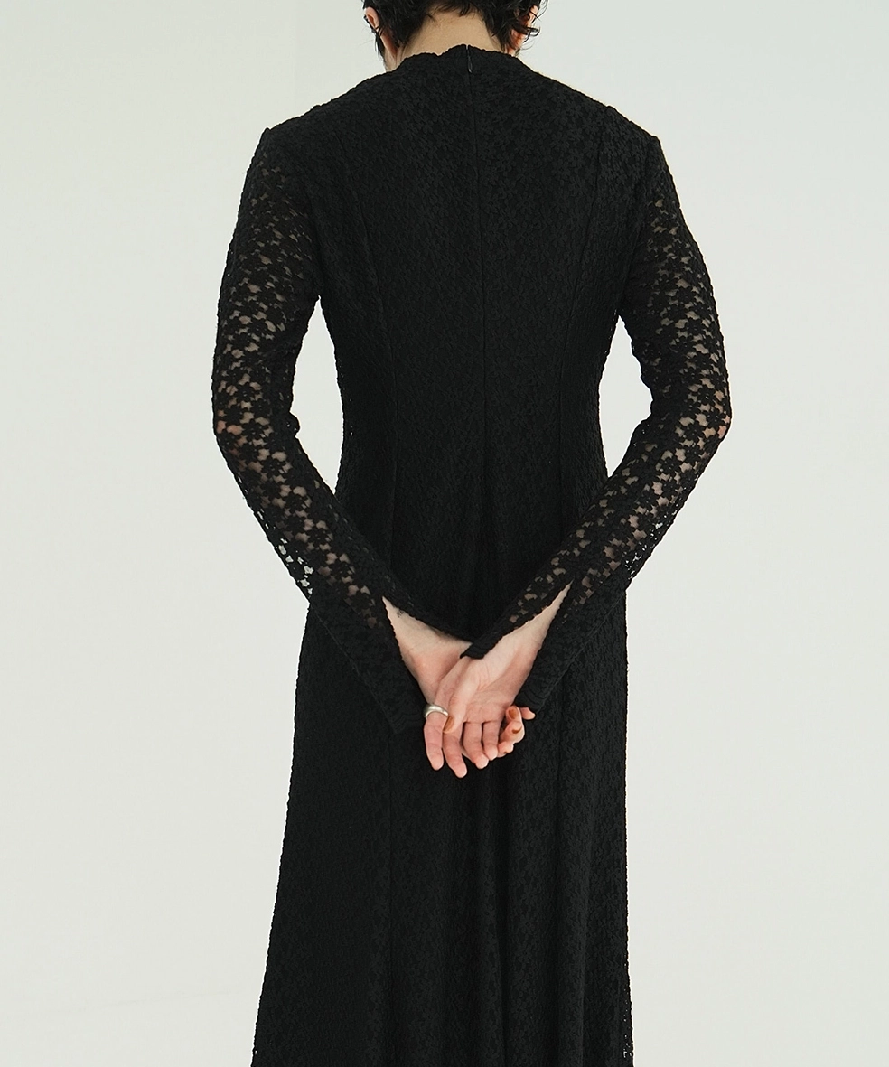 オリジナルの膨れ織り3Dフラワーレースを贅沢に使用したヴィンテージライクなワンピース。程よい透け感で着やすく、シンプルな構成ながら女性らしい美しいシルエットを引き立てます。袖口は長めのスカラップにスリットを入れて華やぎをプラス。デコルテがさりげなく覗くスラッシュネックがポイント。同シリーズの3D FLOWER LACE SHIRTと連動したおすすめ柄です。