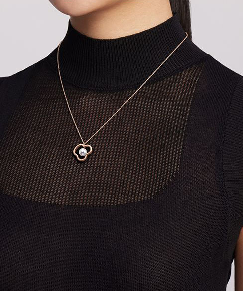 モダンなラインで花の輪郭を描く「chants」から、胸元に可憐さと凛とした表情を添えるペンダント。淡く繊細なSAKURAGOLD™と艶めくあこや真珠のハーモニーが、日常からオケージョンまで上品に引き立てます。