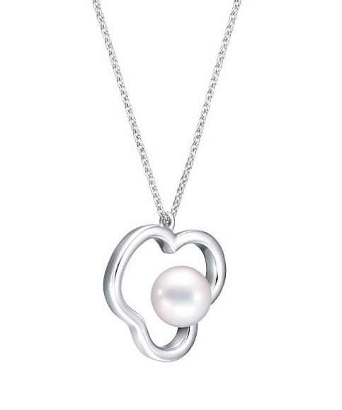 TASAKI「チャンツ」コレクションのペンダント。素材は18Kホワイトゴールドとあこや真珠。トップは花の輪郭を軽やかなラインで表現し、約7.0mmのパールをセット。チェーンは全長約45cm(約5cmのアジャスター含む)、トップは約縦16.5mm×横18.5mmです。可憐さと凛とした印象を両立する、ギフトにも最適な一品。