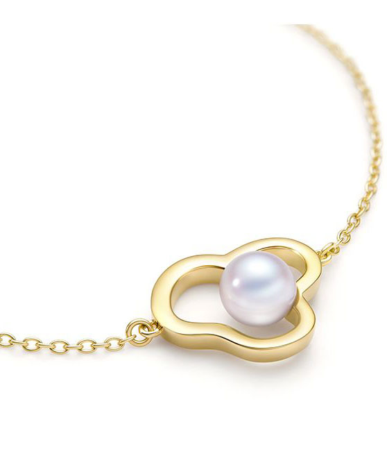 18Kイエローゴールド×あこや真珠の「チャンツ」ブレスレット。全長約17cm(アジャスター約2cmを含む)、トップは約縦13.5mm×横15.5mm、パールは約6.0mm。デイリーからオケージョンまで幅広く活躍するサイズ感です。