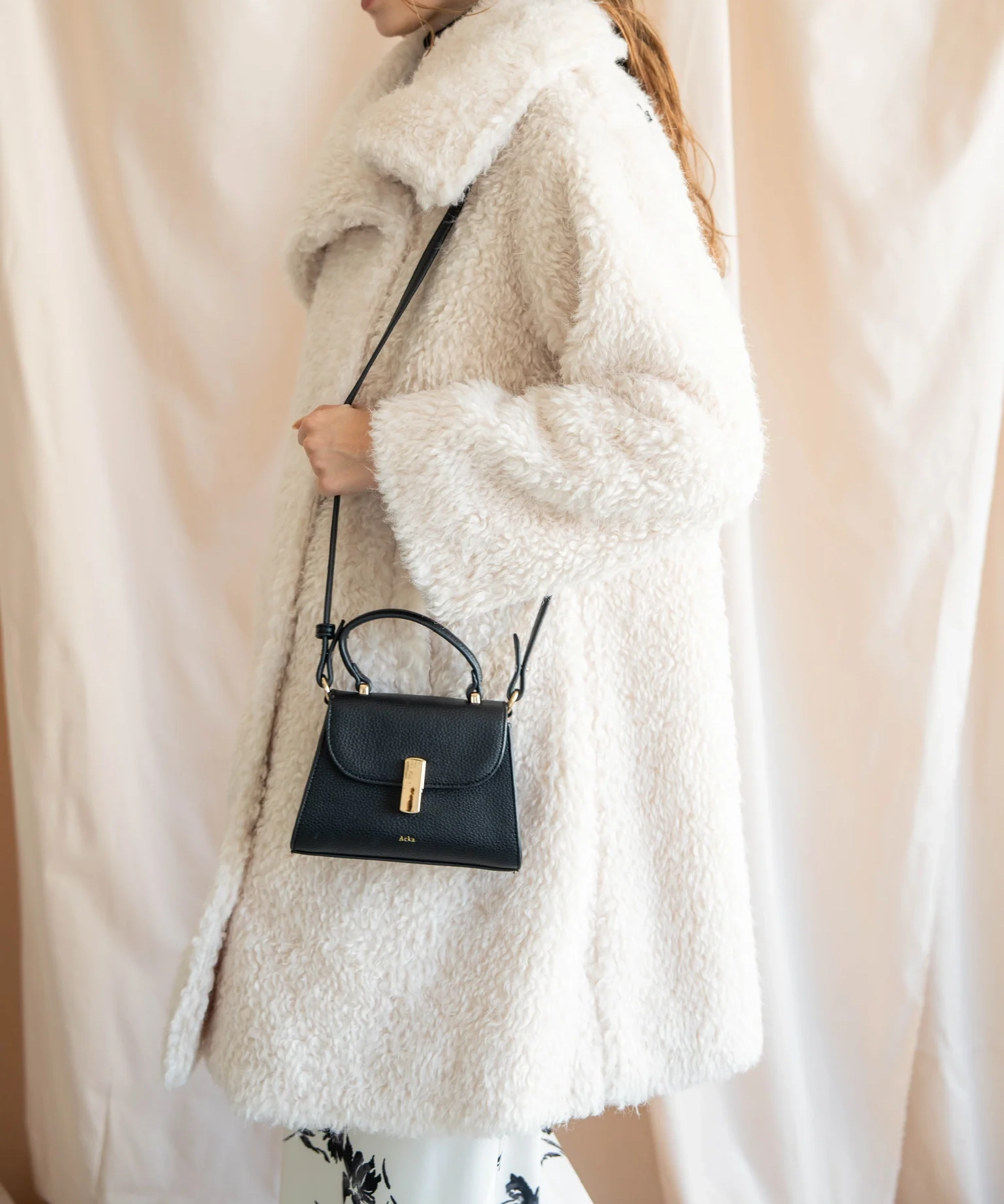 しなやかな質感と程よい艶感が特徴のフェイクレザーを使用したミニバッグです。立体感のあるフォルムで、持つだけでコーディネートにクラシックなアクセントを添えてくれます。