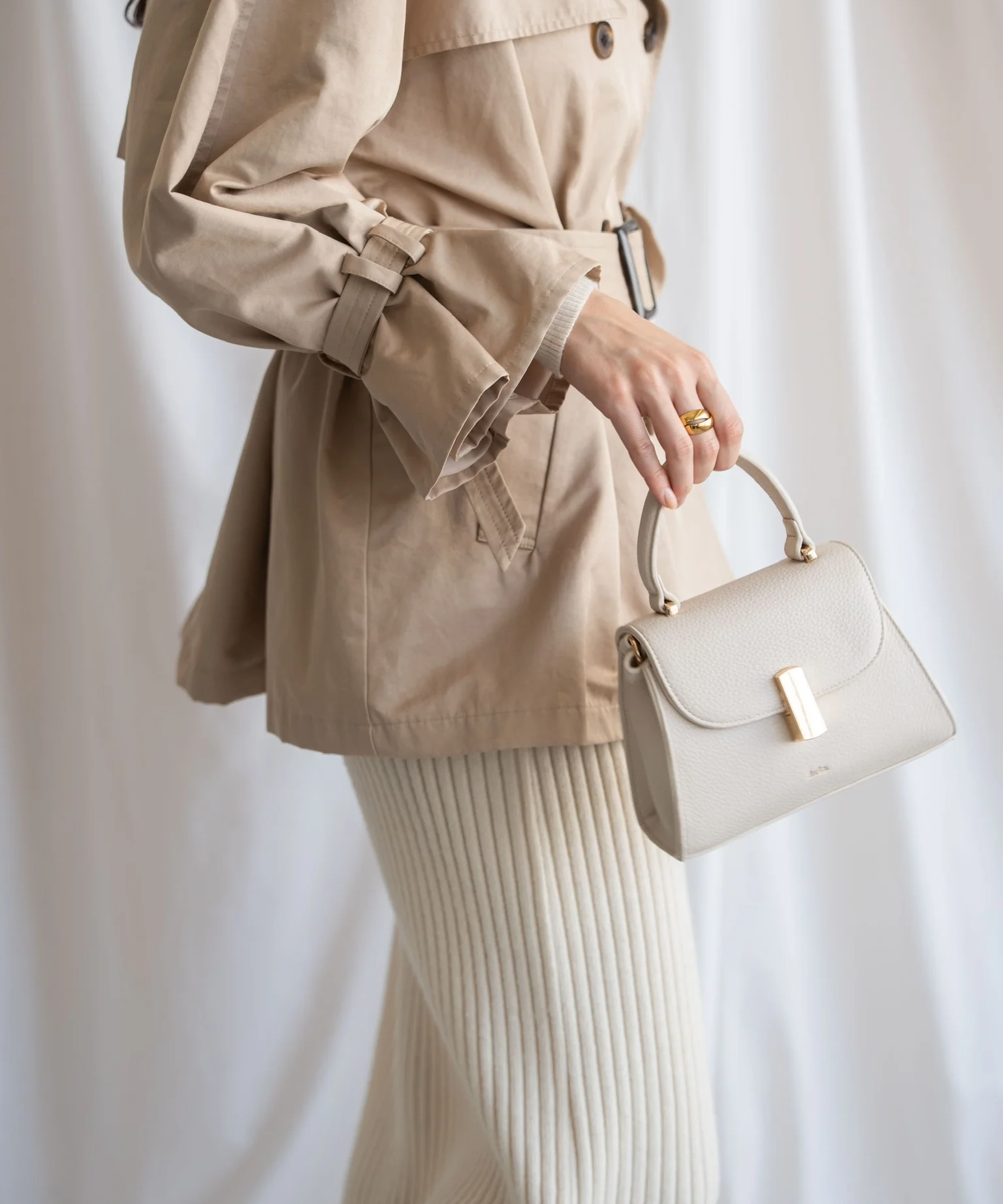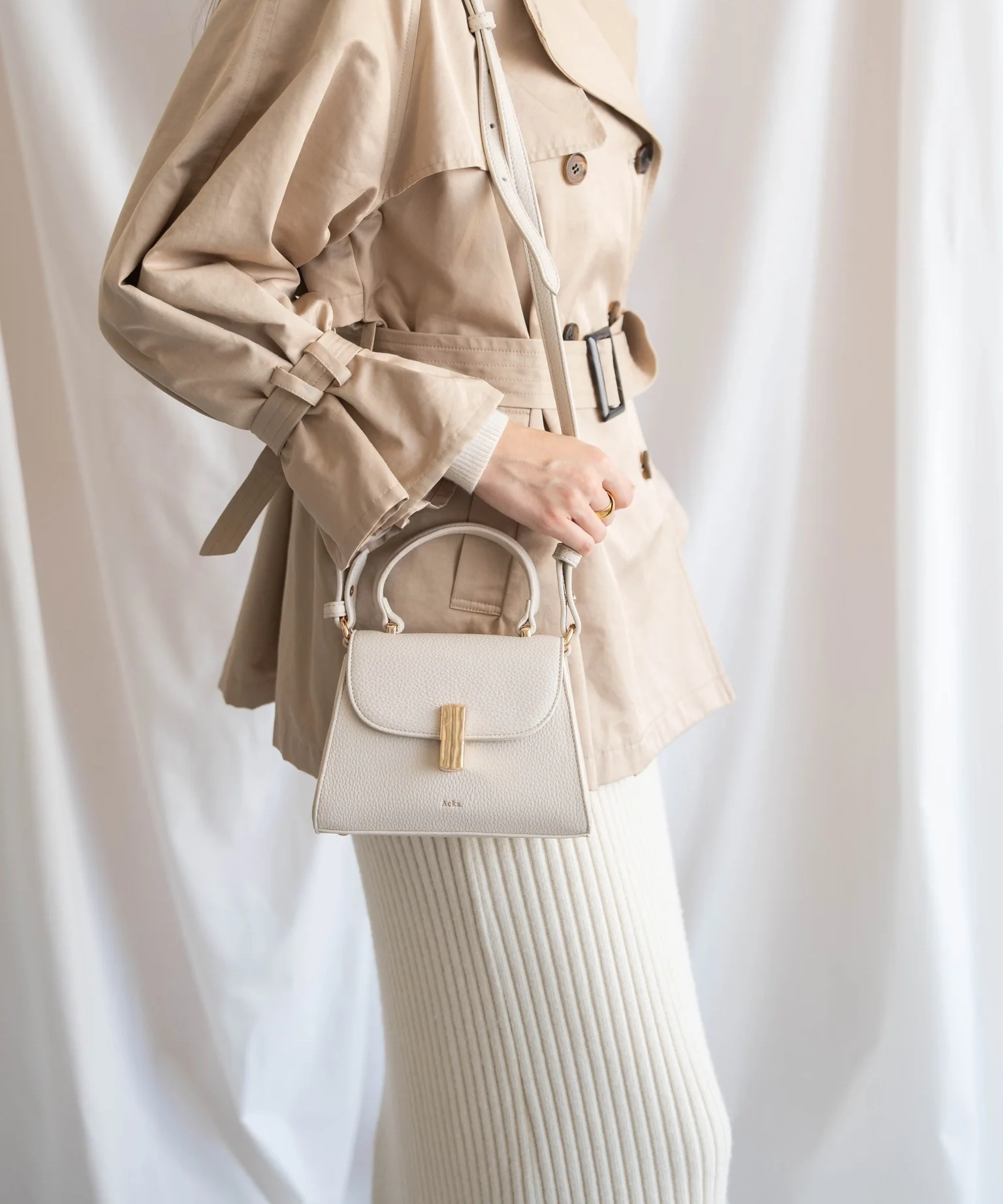 しなやかな質感と程よい艶感が特徴のフェイクレザーを使用したミニバッグです。立体感のあるフォルムで、持つだけでコーディネートにクラシックなアクセントを添えてくれます。