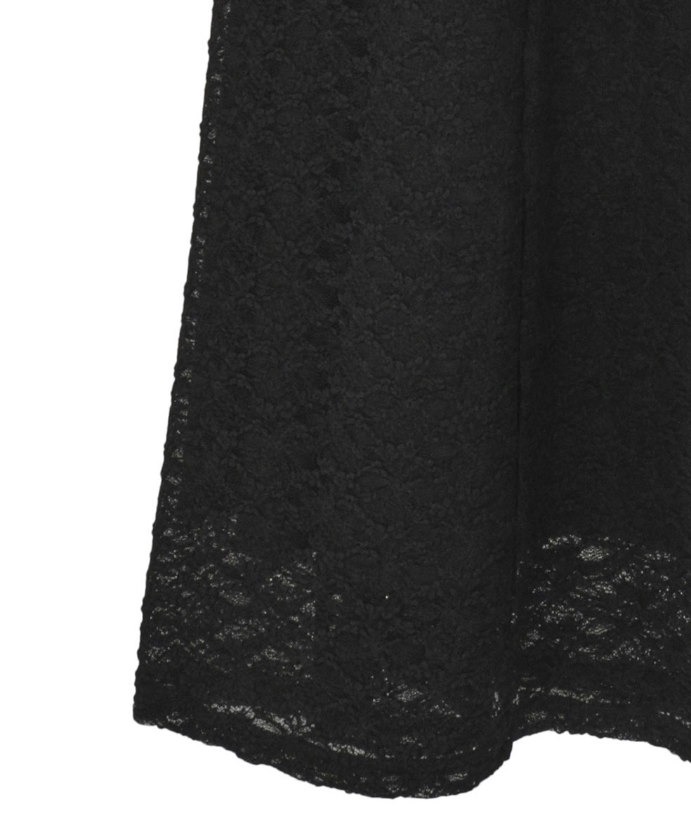 袖部分はややシアーなレースで、肌がほんのり透けることで軽やかな印象に。身頃には裏地を施しているため、インナーの透けを気にせず着用いただけます。ストレッチ性はほとんどありませんが、すとんと落ちるシルエットで体のラインを拾いにくく、縦のラインをきれいに見せてくれるのも嬉しいポイントです。