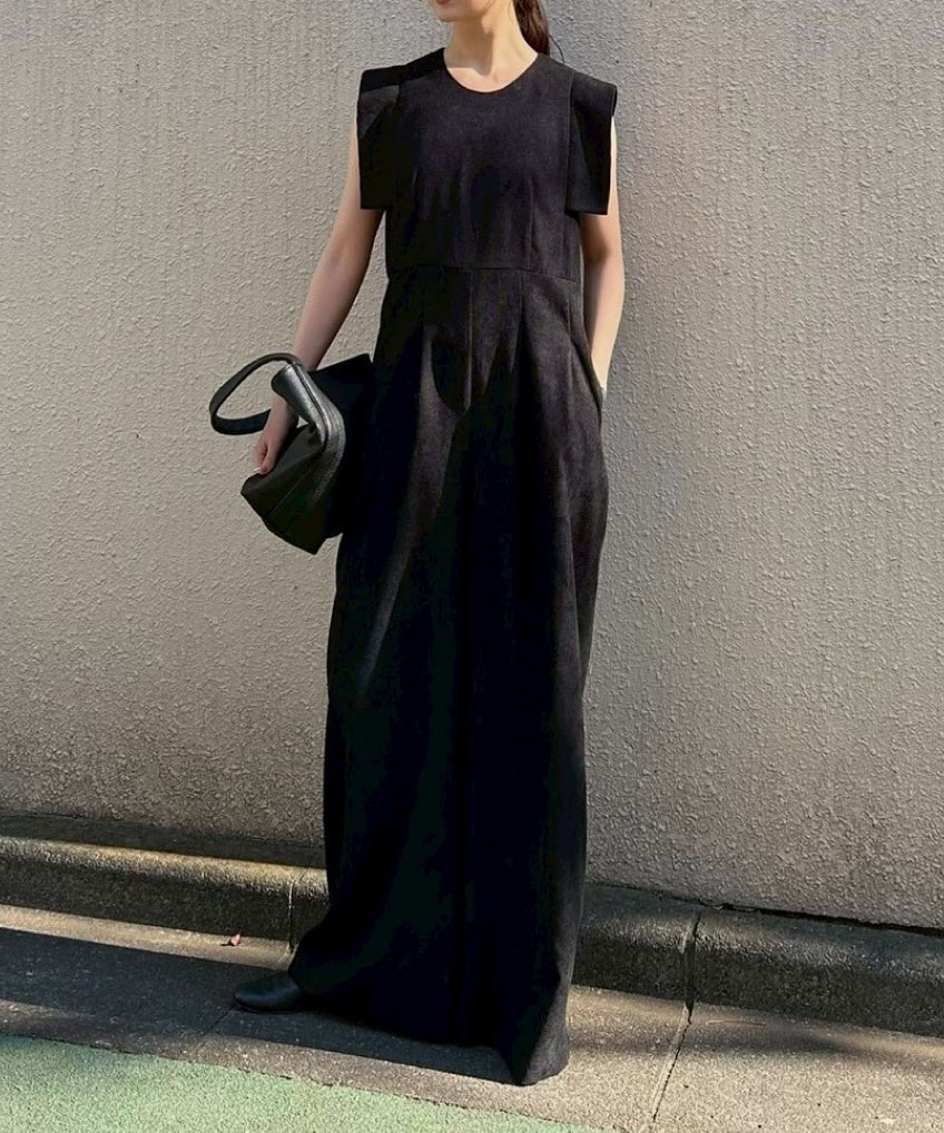 「MINAMI TANAKA×CLANE SQUARE SLEEVE ALL IN ONE」は、コラボレーションによる特別なオールインワンアイテム。柔らかなコーデュロイ素材が肌触りよく、シンプルながらも洗練されたシルエットでデイリーからお出かけまで幅広いシーンに対応します。スクエアスリーブが肩まわりのラインを美しく見せ、大人の女性の抜け感あるスタイルを演出。