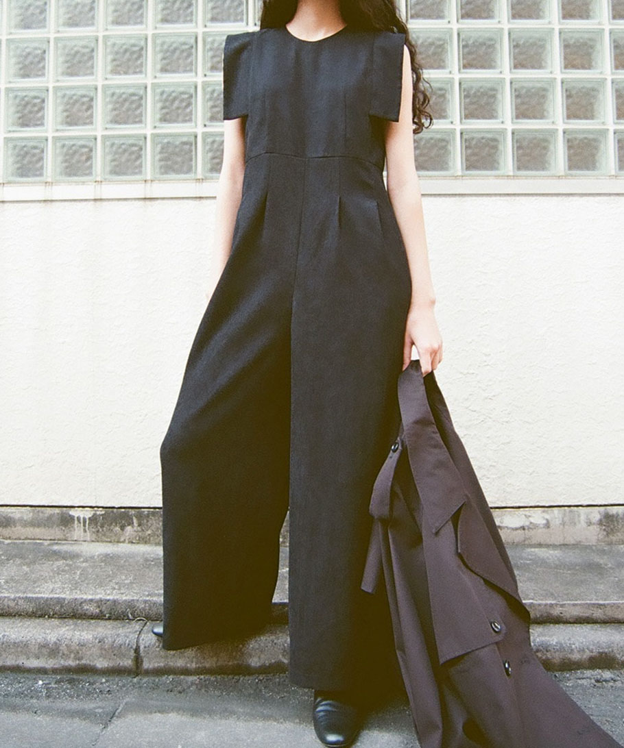 CLANE × Minami Tanaka の人気コラボラインから復刻したスクエアスリーブオールインワン。肩まわりをすっきりと見せるスクエアスリーブデザインが、さりげなく二の腕をカバーしつつモードな印象を演出します。柔らかく細畝のコーデュロイ素材を使用し、大人の抜け感と上品なリラックスムードを実現。程よいゆとりのあるシルエットで、幅広い体型にフィットします