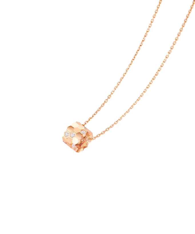ショーメを象徴する人気ジュエリーコレクション「Bee de Chaumet(ビー ドゥ ショーメ)」より、繊細でエレガントなスモールモデルのペンダント。ハニカム(蜂の巣)モチーフに煌めくダイヤモンドがあしらわれ、光を受けて上品に輝きます。18Kピンクゴールドの温かみのある色合いは、肌なじみがよく幅広いスタイルに馴染みます。日常使いにはもちろん、ギフトや記念日など特別な日の装いにもおすすめです。