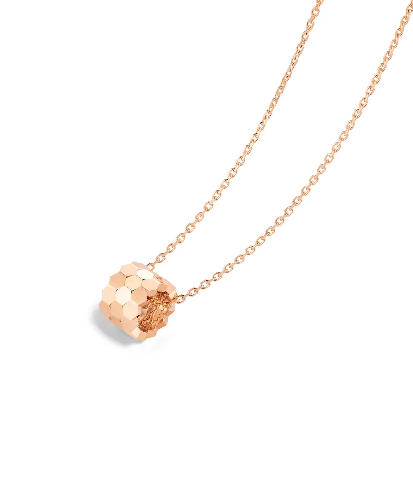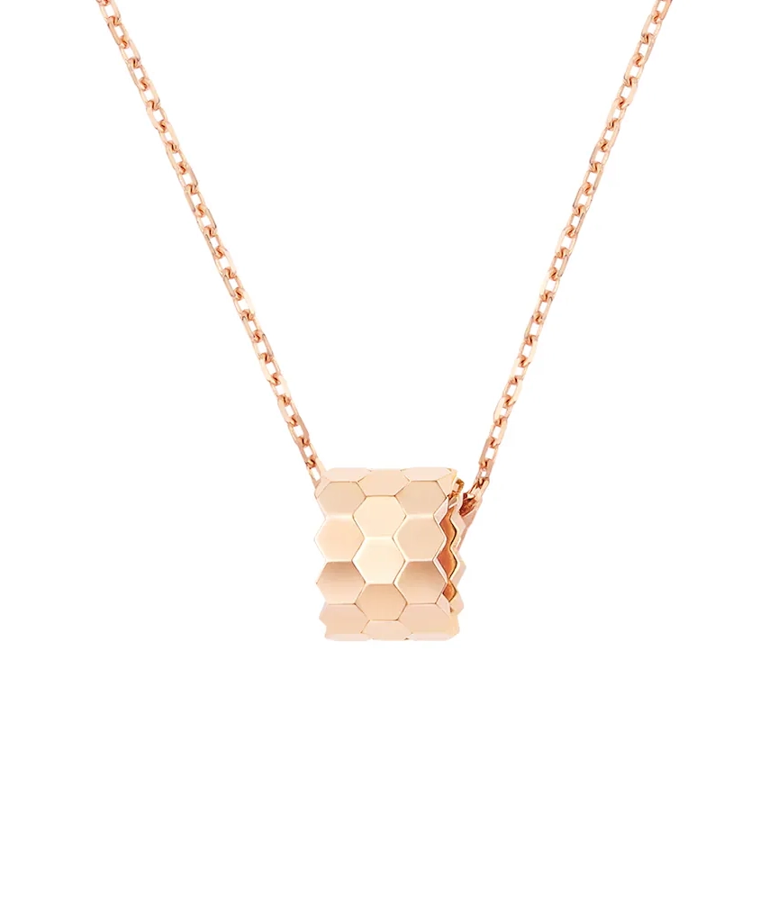 ショーメの人気ジュエリーコレクション「Bee de Chaumet(ビー ドゥ ショーメ)」より、エレガントでモダンなスモールペンダント。連なるハニカム(蜂の巣)モチーフが、ブランドならではの洗練されたデザインを象徴します。18Kピンクゴールドの柔らかな色味は肌になじみやすく、単体でもレイヤードでも美しく輝き、日常使いから記念日まで幅広く活躍します。