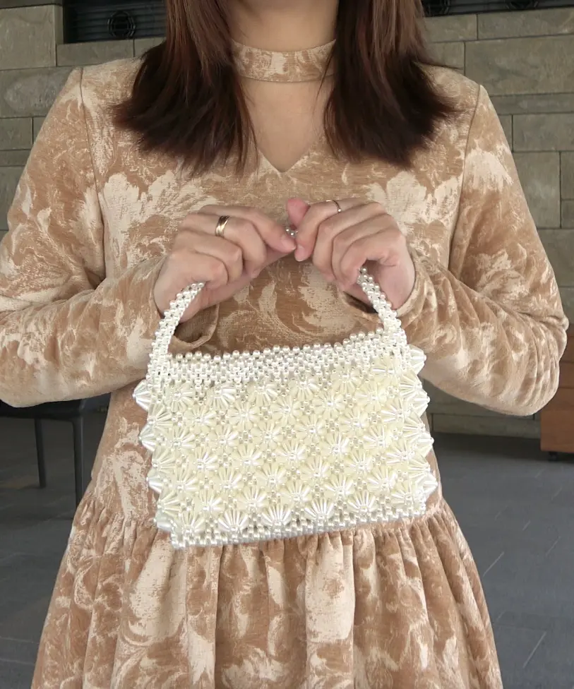 総柄×フロッキーの表情が上品で、きれいめにまとめたい日にも頼れるロングワンピです。デコルテがきれいに見えるネックデザインと、上身頃の程よいフィット感で、全体がすっきり見えるのが嬉しいポイント。ウエスト切替から自然に広がるスカートラインで、立体感もきれいに出ます。透け感は基本なし・伸縮性なし・裏地ありなので、安心感のある着心地です。