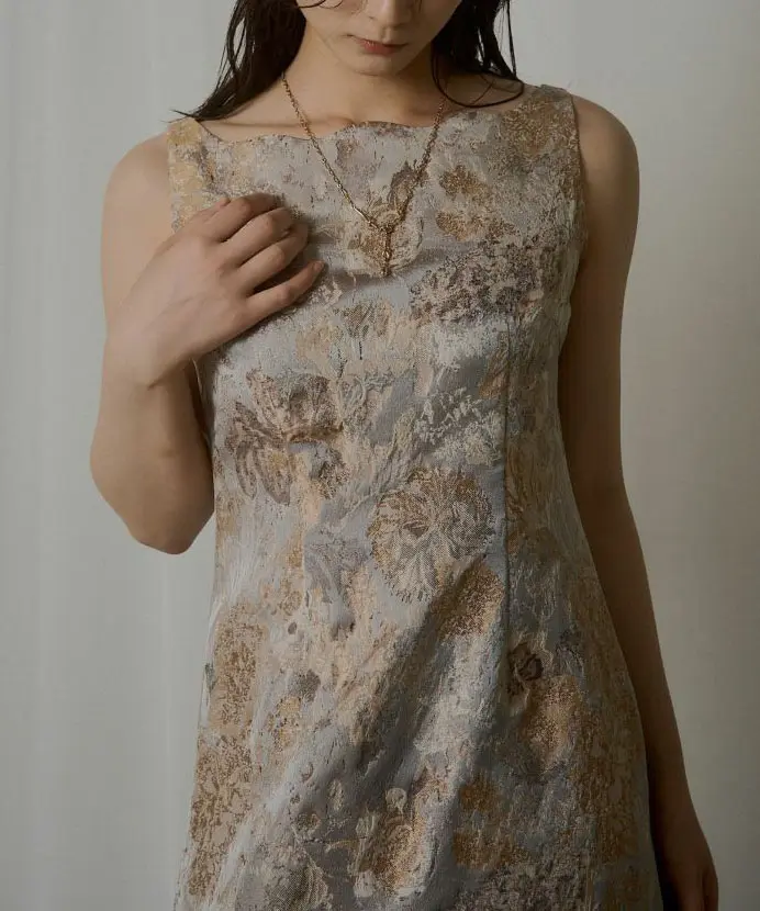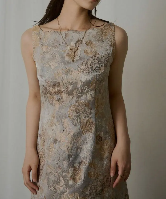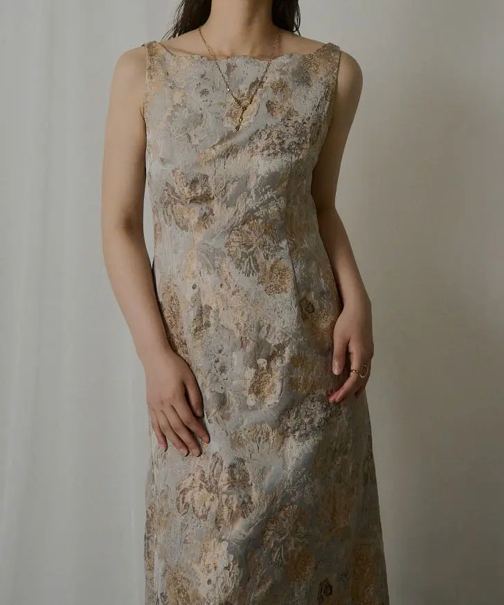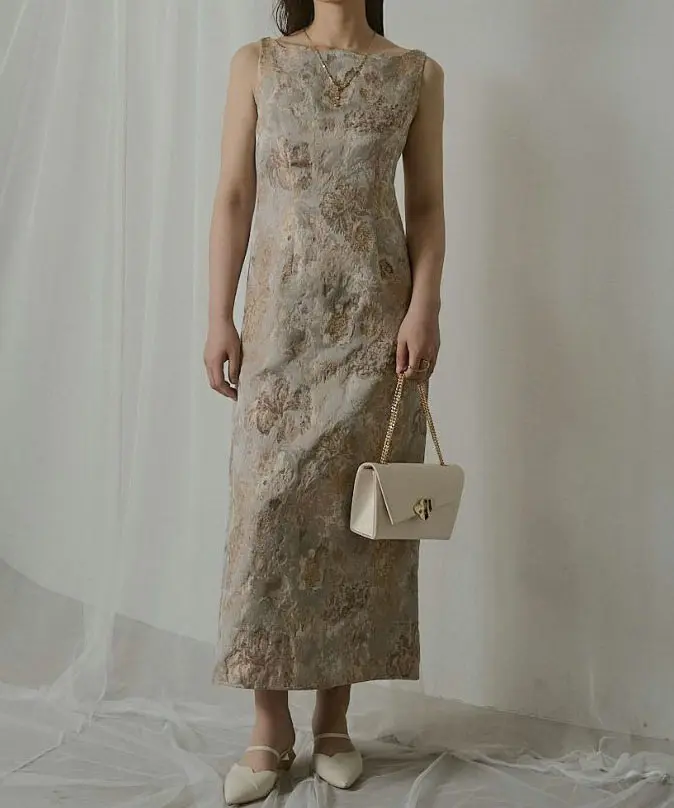 都会的で存在感あるジャガードドレス。ジャガード生地とデコルテ部分のデザインで、他にない“ひと癖ある”ムードを演出し、抜け感とやわらかな印象を両立します。ウエストは程よくシェイプし立体感とスタイルアップ効果をプラス。スカート部分は緩やかな丸みのあるコクーンシルエットで、着心地と歩きやすさにも配慮しバックスリットを入れています。軽やかで程よく薄手のジャガード生地のため、フィット感のあるシアー素材やチュールトップスのレイヤード、ジャケット合わせなど幅広く着回し可能です。