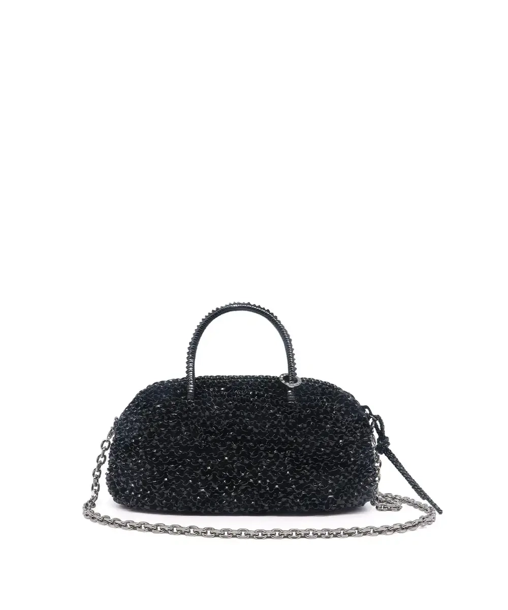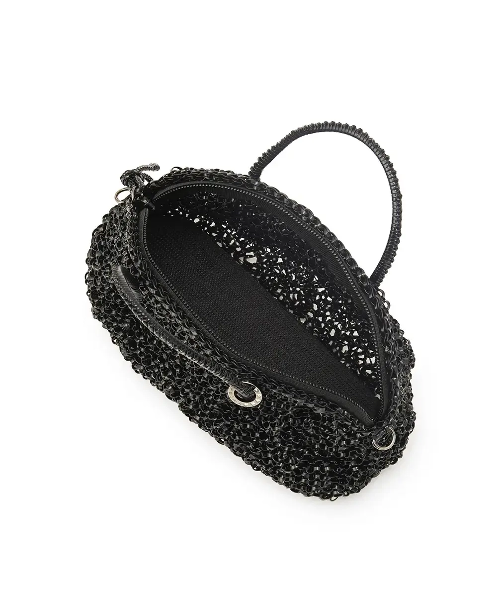 ころんとしたオーバルシルエットが可愛く、コーデに“きちんと感+遊び心”を足せるワイヤーバッグです。ファスナーの引き手にワイヤーコードを使っていて、シンプルなのにちゃんと洒落て見えるのがポイント。スモールサイズでもスマホやフラグメントケース、厚みのある小さめポーチまで入るので、見た目以上に頼れる収納力です。斜めがけチェーンは取り外しできるので、手持ちで上品に・ショルダーで実用的に、シーンで使い分けできます。上品な光沢のエナメルブラックは、光に当たるとほんのり艶めいて、パーティーからきれいめ普段使いまで幅広く合わせやすいカラーです。