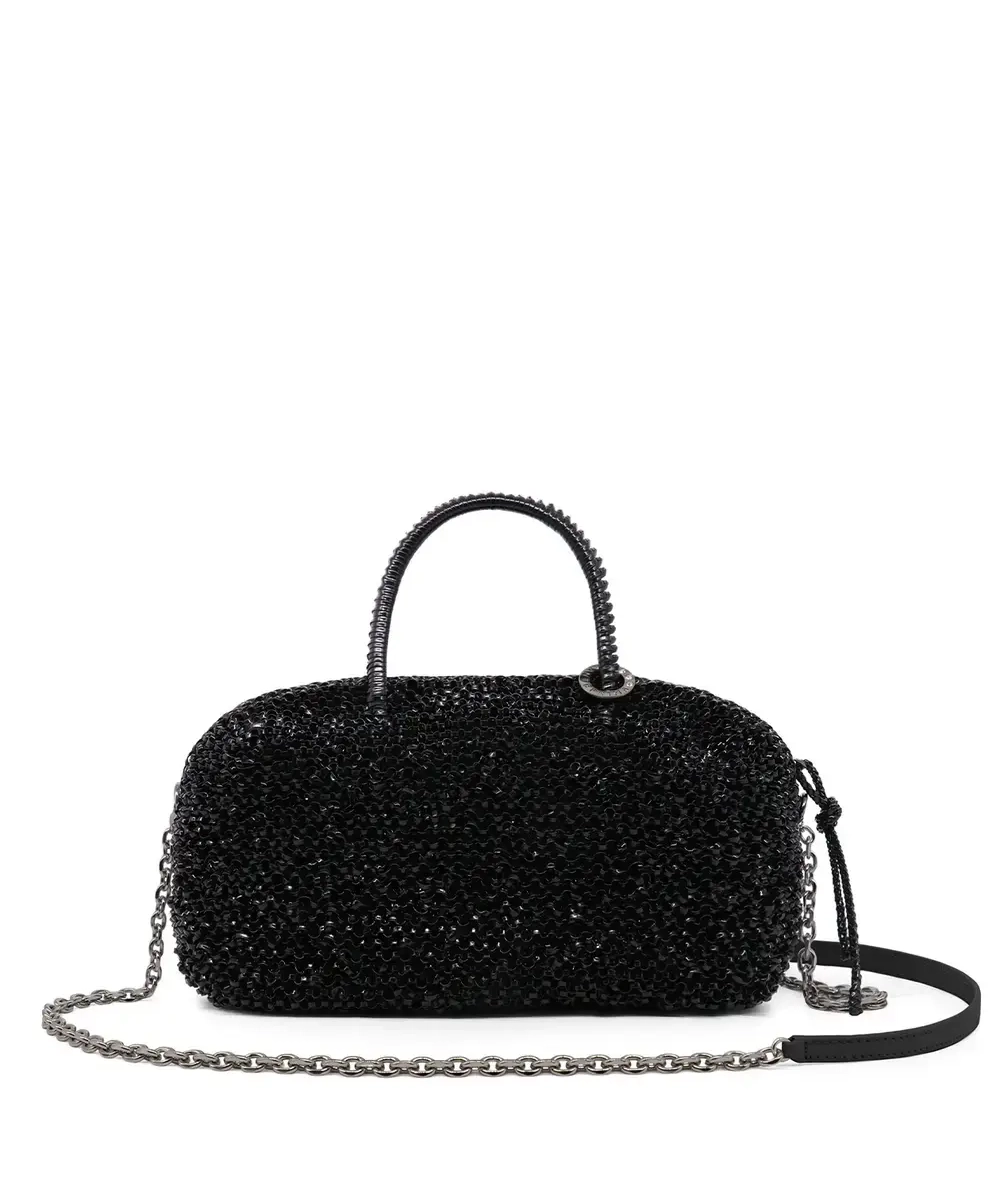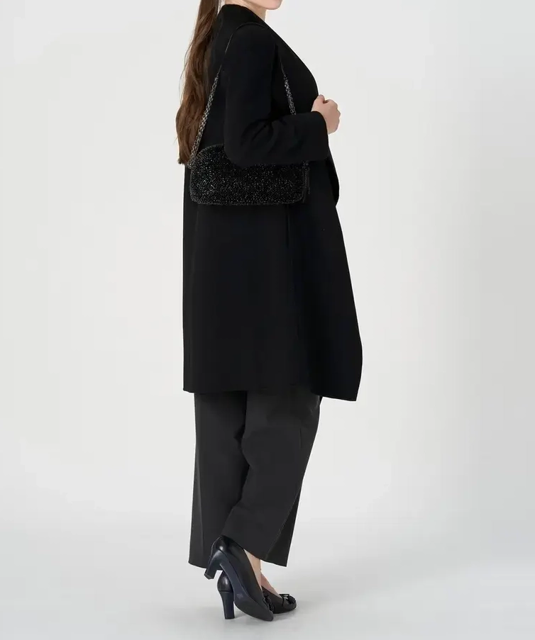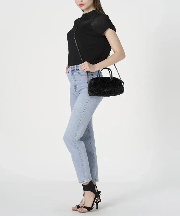 “ファスナー付きでしっかり入る”のが嬉しい、CONFETTOのミディアムサイズ。ころんとしたオーバル形はそのままに、必需品+α(折りたたみ傘やペットボトルまで)入るサイズ感なので、オケージョンだけでなく普段のきれいめコーデにも出番が増えます。エナメルブラックは上品な光沢で、光に当たるとほんのり艶めく大人カラー。取り外しできるチェーン付きなので、手持ちで上品に、斜めがけで実用的にと使い分けも◎です。